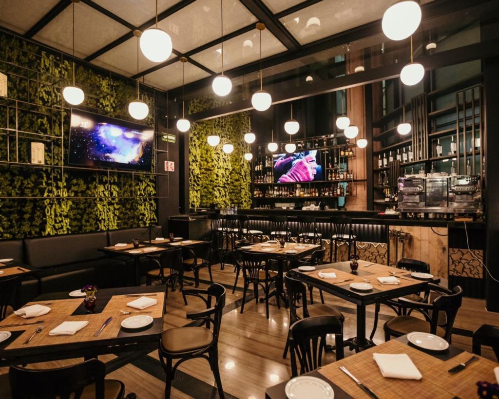 Elegante y moderno con una decoración minimalista, este espacio tiene un menú mexa-japonés en donde aunque no lo creas la estrella son los mariscos traídos directamente de Ensenada. Además de los cortes de carne también de productores locales. La terraza de A la Parrilla tiene murales verdes y una cava con las mejores botellas de vinos y licores, además de un enorme cristal en el techo que deja entrar los rayos de luz de manera tenue. La cocina abierta se encuentra en la parte superior y se puede ver desde algunas mesas de la terraza. También tienen un salón privado con una barra que sirve algunos clásicos de la coctelería.