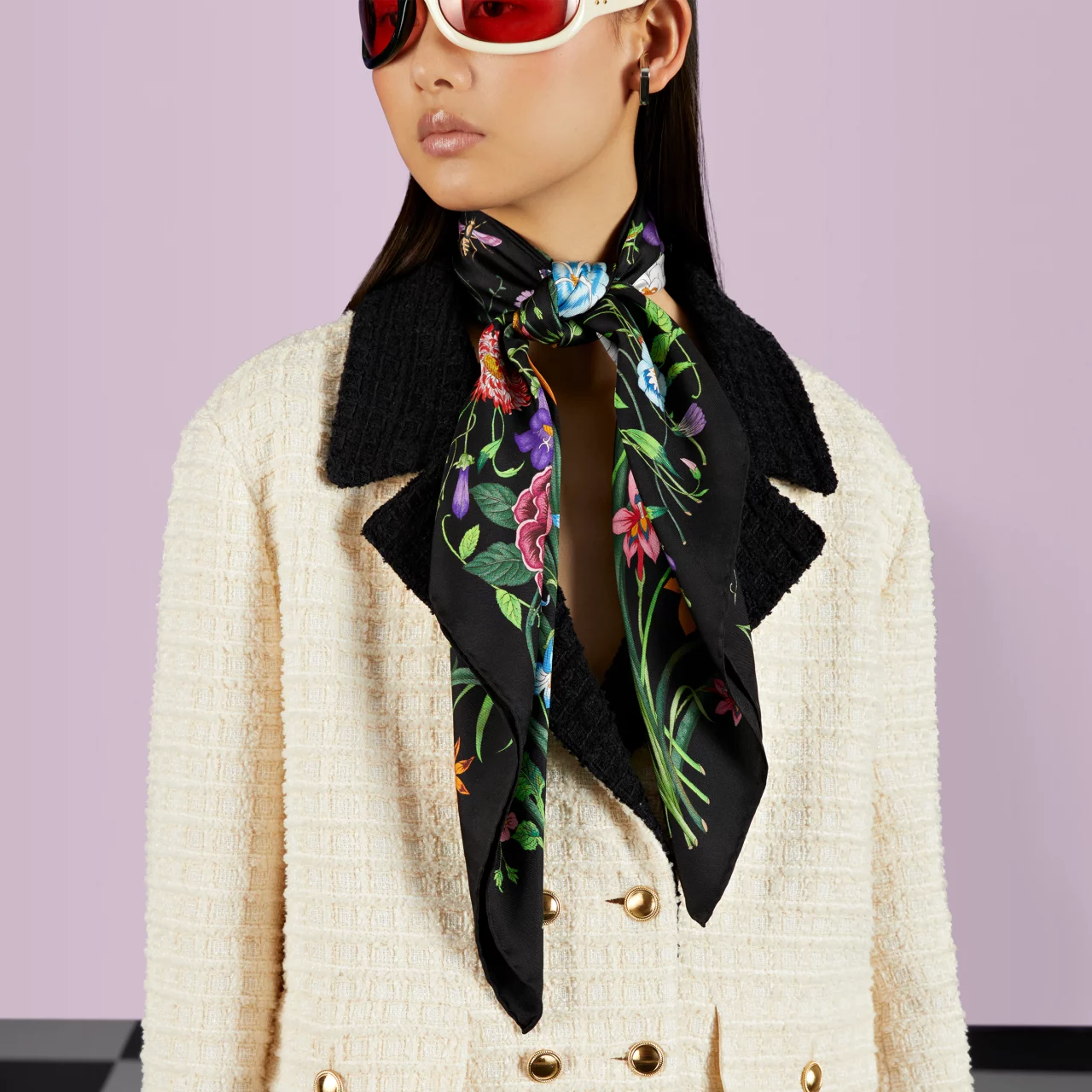 Este accesorio básico sale directo de la máquina del tiempo para recordarnos esa elegancia que se guarda en los detalles (y en la bolsa). Los pañuelos y mascadas han sido una pieza sutil pero fundamental en la moda a lo largo del tiempo, y su genialidad radica en su practicidad y versatilidad. Primero, porque son el aliado perfecto para cubrirte un poco del viento inesperado, y segundo, porque con un pañuelo se pueden hacer maravillas. Desde envolverlo alrededor del cuello hasta atarlo en la cabeza, en la cintura o incluso en la muñeca, los pañuelos y mascadas pueden llenar de color tu outfit, pero también pueden hacer de tu look lo más clásico o ‘edgy’ posible.
