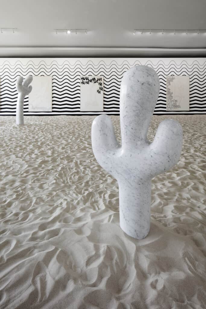 Esta exposición reúne el trabajo de tres artistas internacionales —Suiza, México y Dinamarca— que cuestionan la relación entre el ser humano y la naturaleza. Como suele ser el caso con las exposiciones de Lago/Algo, esta es una experiencia que plantea vivir el arte desde la participación, y esta no es la excepción, pues parte de la idea es que el visitante recorra una sala llena de arena y cactus. La crítica al progreso sin límites ni consciencia sobre el futuro de las próximas generaciones