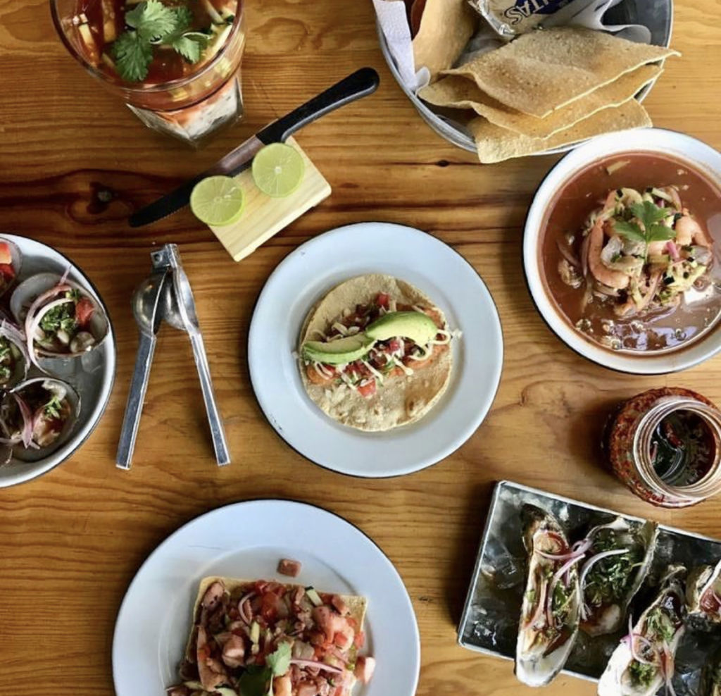 Este lugar es del famoso chef Salvador Orozco, es famoso por ‘La Señora Torres’ una enorme torre de mariscos que se ve increíble entre camarones, pulpo, aguacate y muchas salsas. En cuanto a las tostadas este lugar tiene especiales cada semana que varían dependiendo el producto de temporada, puedes encontrar: aguachile de callito, atún del Pacífico con salsa especial y almeja cochito a la mexicana o almeja roja de Baja sur. Recuerda pedir su aguachile negro.