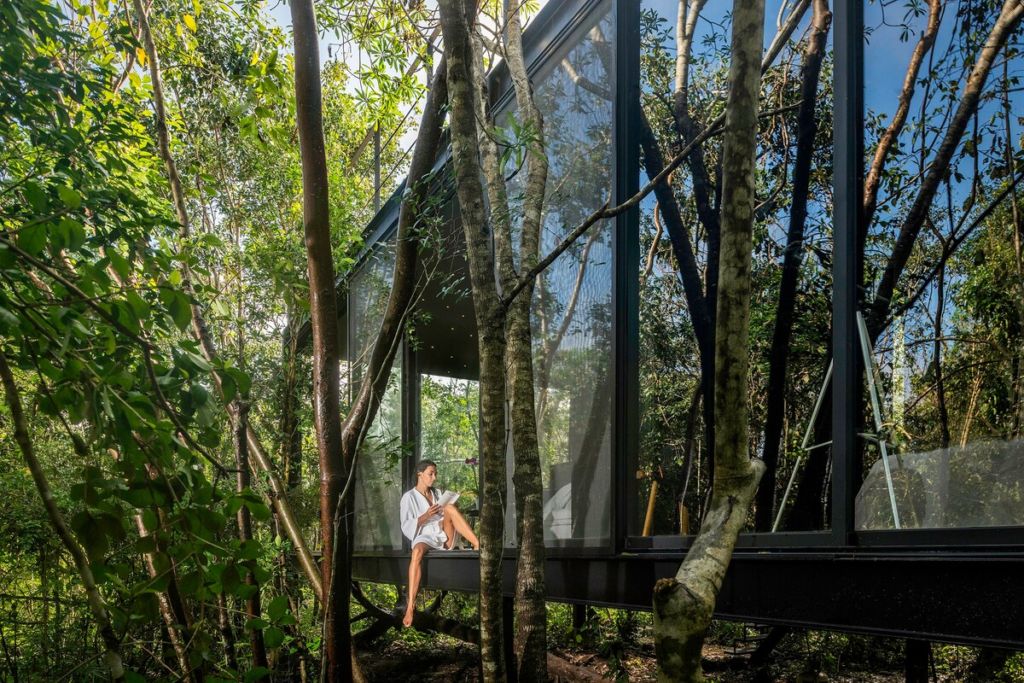 Ubicado en Puerto Morelos, Quintana Roo, este alojamiento te robará el corazón gracias a su diseño, pues es una cabaña hecha completamente de cristal en medio de la selva maya, por lo que podrás disfrutar los sonidos de la naturaleza, observar un precioso cielo estrellado, dar un paseo en bicicleta rodeado de vegetación o simplemente admirar el verde paisaje desde la habitación sin muros.