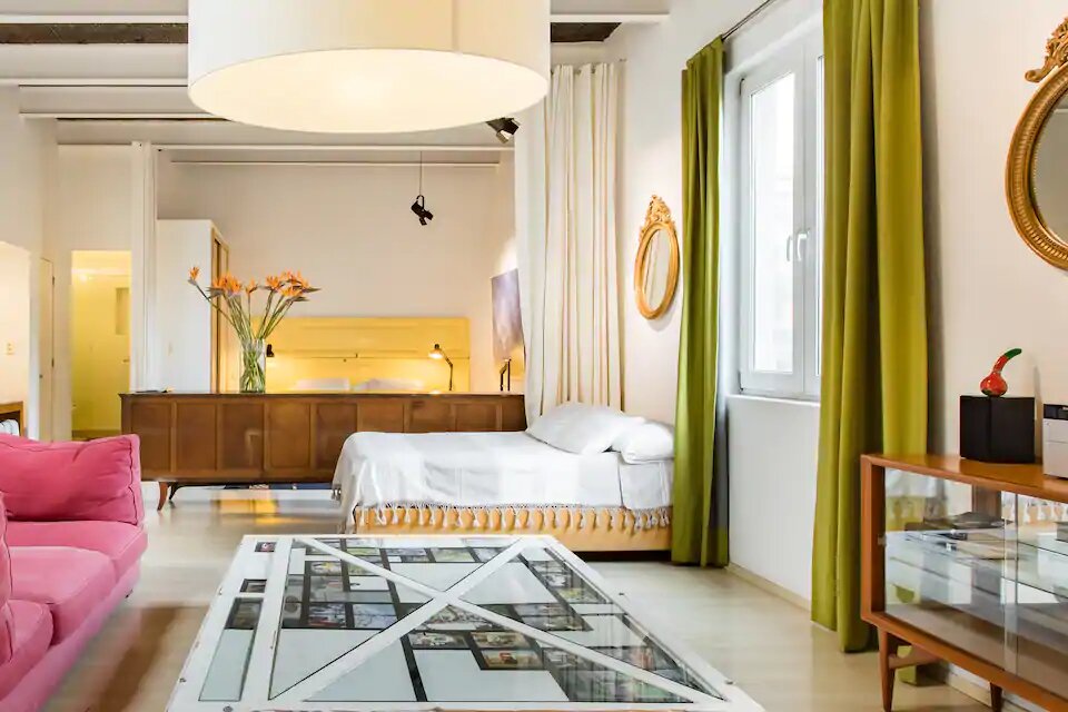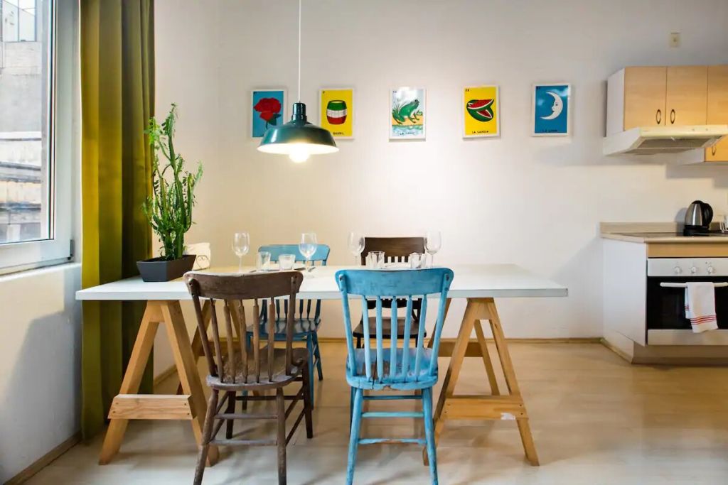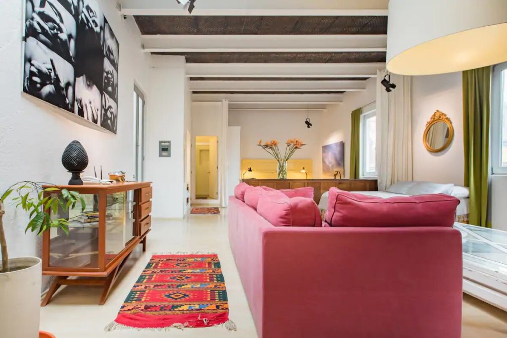 Este Airbnb, un elegante y original loft ,es un sencillo e increíble espacio con pequeños toques de diseño mexicano. Sus altos techos, vigas de acero descubiertas y coloridos contrastes artísticos le otorgan una belleza sublime, que compagina armoniosamente con el edificio del siglo XIX que lo habita. Lo mejor de todo es que su incomparable ubicación, sobre la Calle Madero en el corazón del Centro Histórico, es perfecta para absorber toda la cultura e historia de la capital.