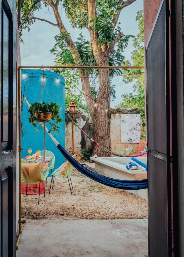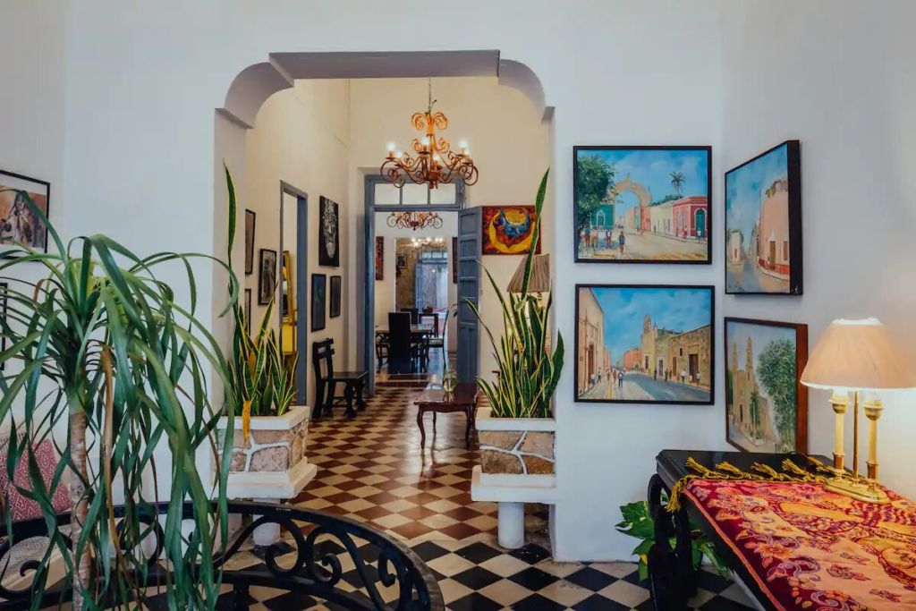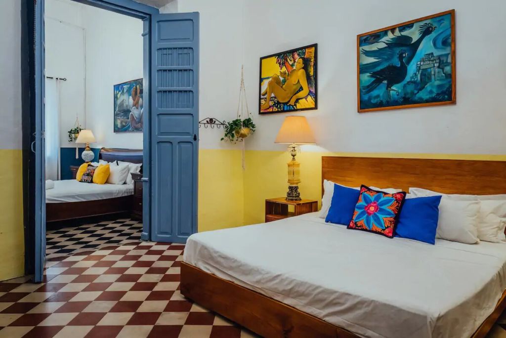 Más que un alojamiento cualquiera, La Morada es una exhibición de arte nacional. Esta casa-galería, ubicada en el Centro Histórico de Mérida, se encuentra rodeada de incontables museos, restaurantes típicos y espacios culturales. La casa preserva su esencia colonial, que se llena de vida gracias a las obras de arte que colman sus paredes. Tiene también un jardín con una pequeña alberca y una hamaca que cuelga sobre ella, un espacio perfecto para relajarse y disfrutar.