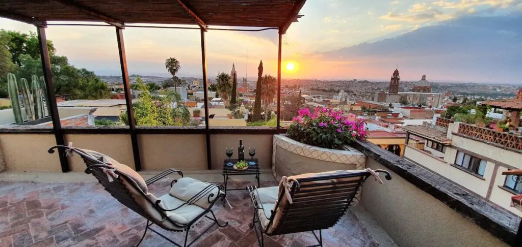 Ubicada a tan solo tres cuadras de la Parroquia de San Miguel de Arcángel, Casa Tranquila es un encantador y romántico espacio colonial, perfecto para disfrutar toda la historia y atmósfera del Pueblo Mágico. Aparte de un diseño muy mexicano con paredes de piedra expuesta, cojines bordados y decoraciones artesanales, este alojamiento cuenta con una hermosa terraza con una hermosa vista de San Miguel de Allende.