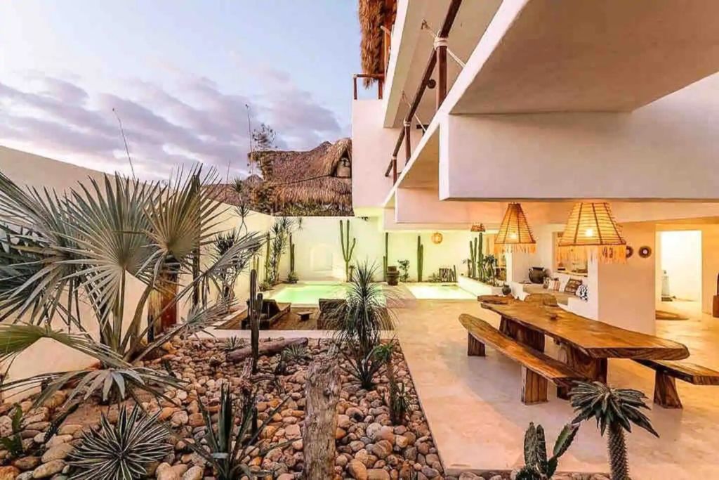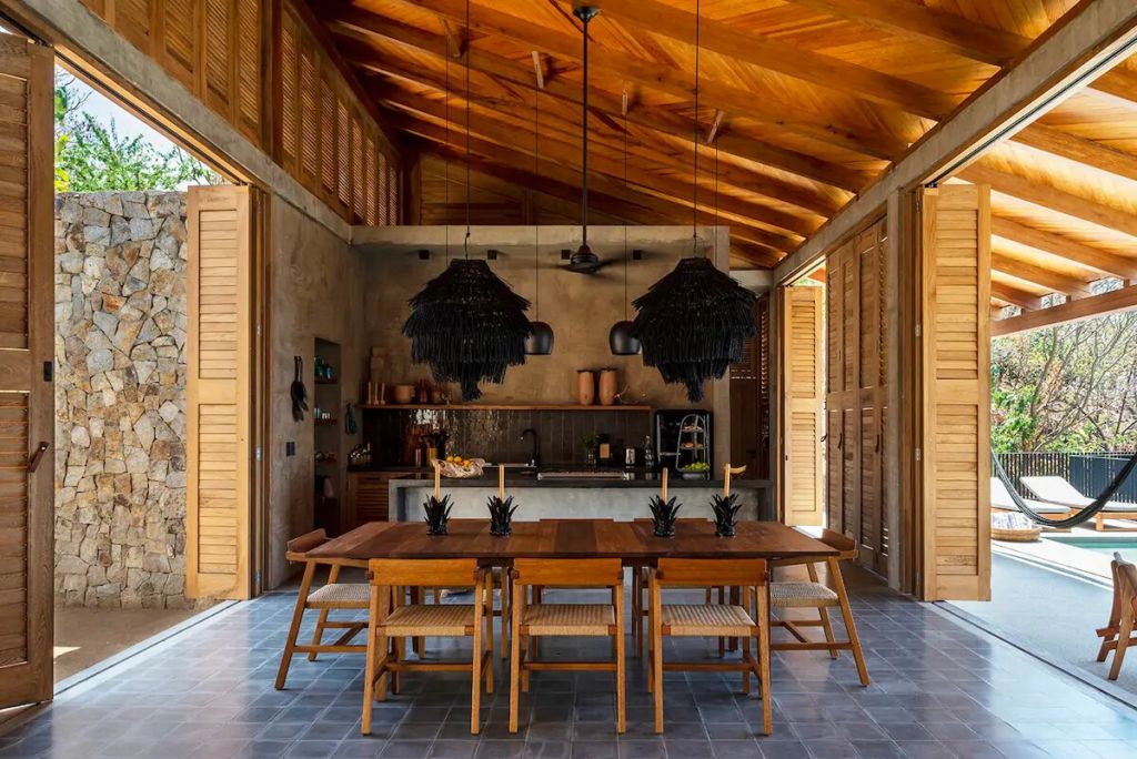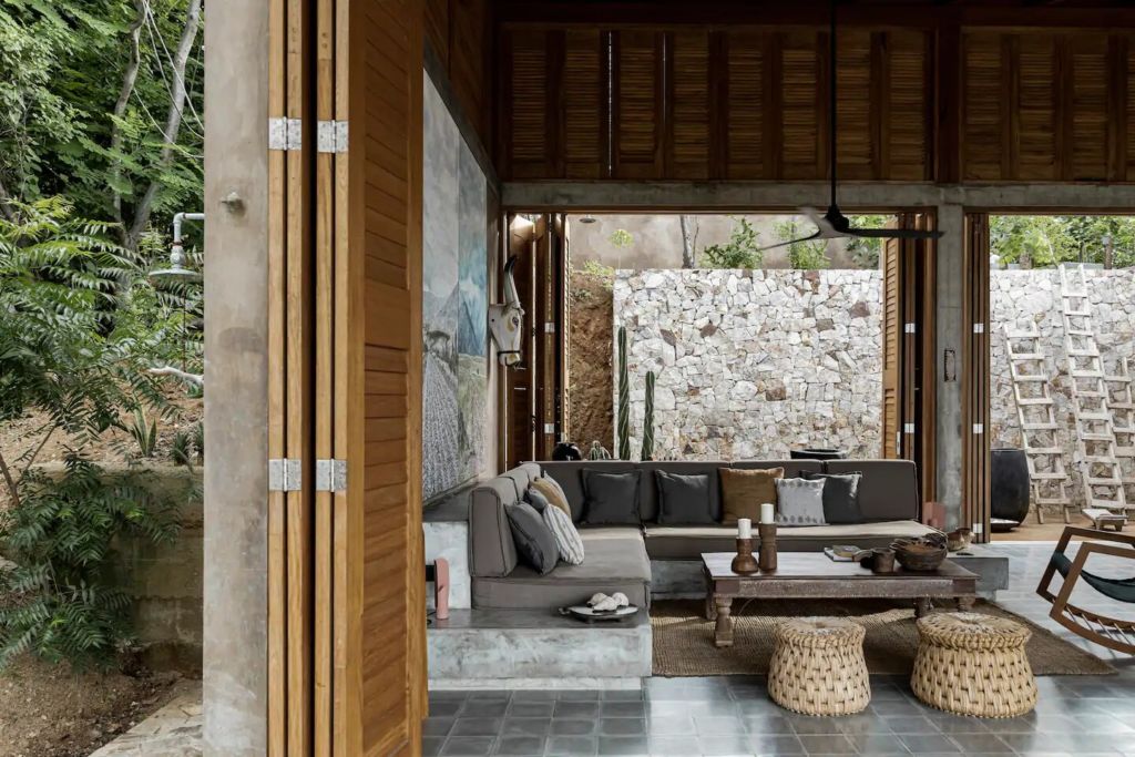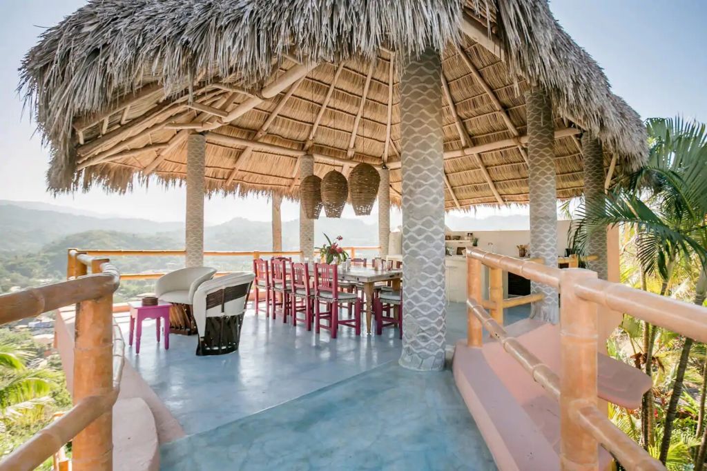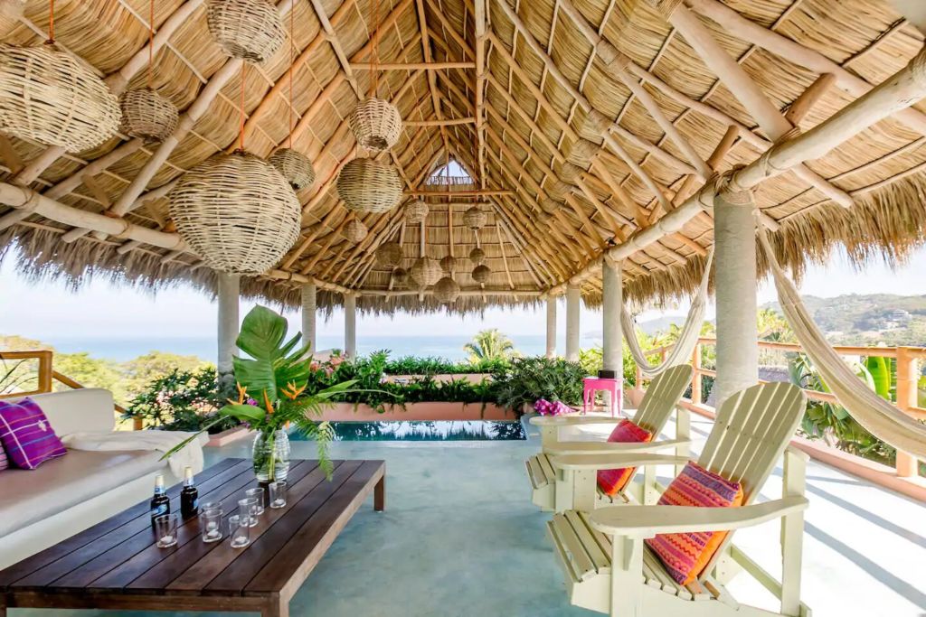 La Extraviada es una exclusiva casa en Mazunte, uno de los Airbnb’s boho en playas de México que tienes que visitar. Su diseño arquitectónico contemporáneo armoniza perfectamente con su entorno natural, lo que le da al lugar una atmósfera bohemia y despreocupada. El lugar cuenta con todas las comodidades necesarias para asegurar una estancia sin igual, con cocina abierta y equipada, patio interior, terraza con alberca y espectaculares vistas al Océano Pacífico.