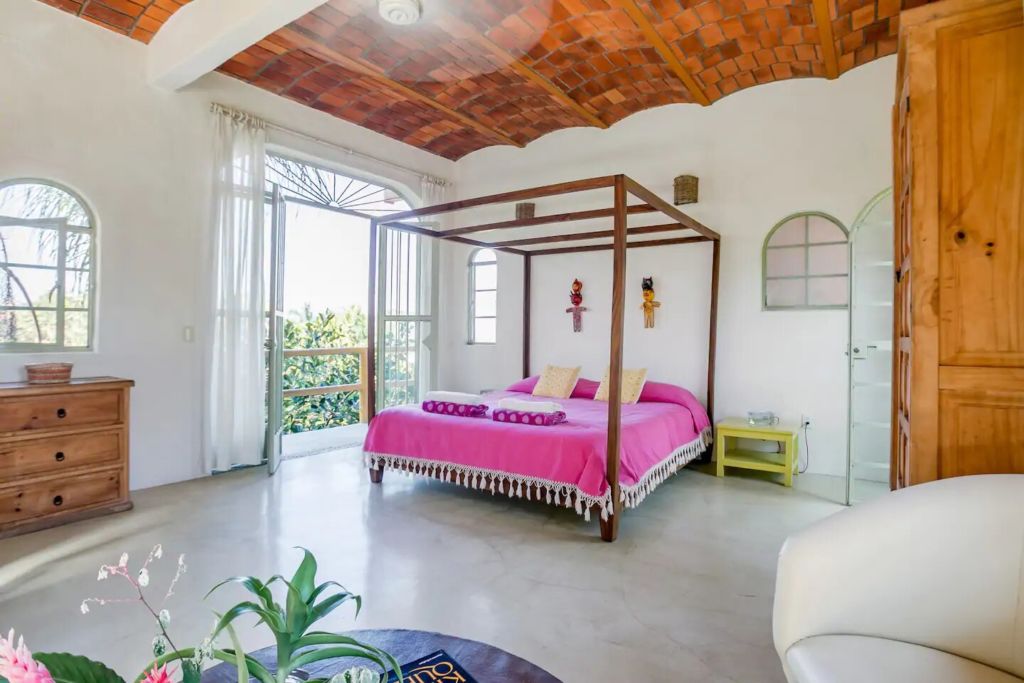 Esta hermosa villa, ubicada sobre la costa de Playa Blanca en Guerrero y dentro de un romántico Hotel Boutique, cuenta con una espectacular vista al mar y un ambiente bohemio. Definitivamente uno de los Airbnb’s boho en playas de México para descansar cómodamente y disfrutar de un servicio personalizado. Podrás relajarte en su alberca privada y pasar una agradable tarde en su área de asador, lo que hará que tengas una estancia placentera e inolvidable.