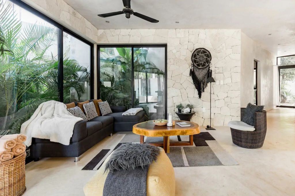 Este oasis en medio de la jungla es el sitio perfecto para disfrutar de las hermosas playas de Tulum. Con paredes y pisos en Chukum – un material natural de la arquitectura maya -, acabados en cuarzo, grandes ventanales con vista al mar, así como un diseño bohemio y ancestral, será un cómodo hospedaje. Te recomendamos preguntar por su servicio de chef privado, para que puedas explorar al máximo la deliciosa oferta culinaria de la zona.
