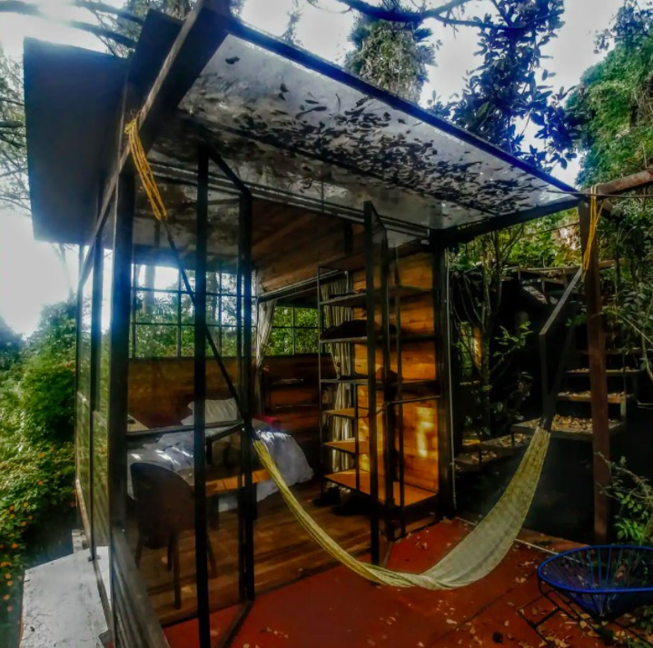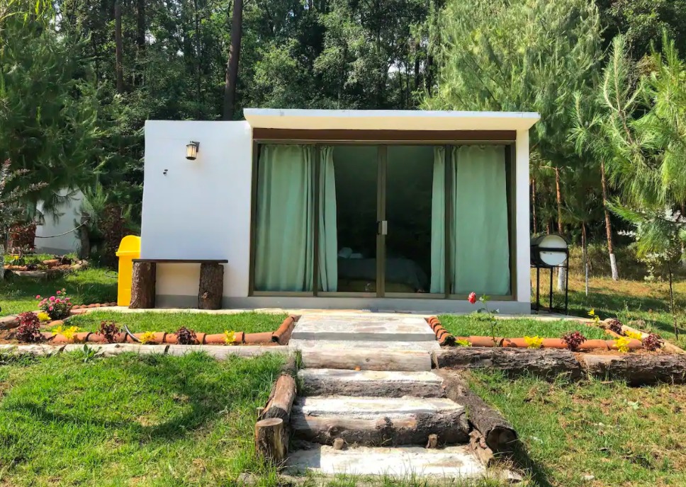 Este Airbnb cerca de la CDMX es perfecto para los amantes de la naturaleza, pues consiste en cabañas totalmente equipadas en medio del bosque. Cada una cuenta con un baño completo con agua caliente, una cama queen size con materiales de alta calidad para asegurar una buena noche de descanso y lo mejor de todo es que al despertar podrás disfrutar un desayuno continental de café, fruta y pan de la región, que será llevado a tu estancia.