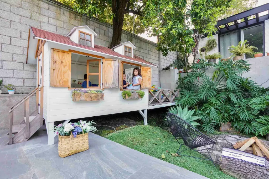 Además de ser uno de los mejores Airbnb’s con alberca en Morelos, este alojamiento será el paraíso para familias que busquen un sitio cómodo para adultos y lleno de entretenimiento para los más pequeños. Cuenta una casita del árbol, jardín con más de 150 especies distintas, alberca con caldera y espejo de agua, brincolín, bicicletas, fogatero, golfito, e inclusive XBOX con más de 15 juegos premium y futbolito electrónico con voz de Martinoli con créditos ilimitados.