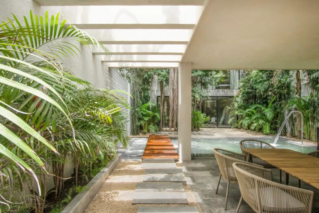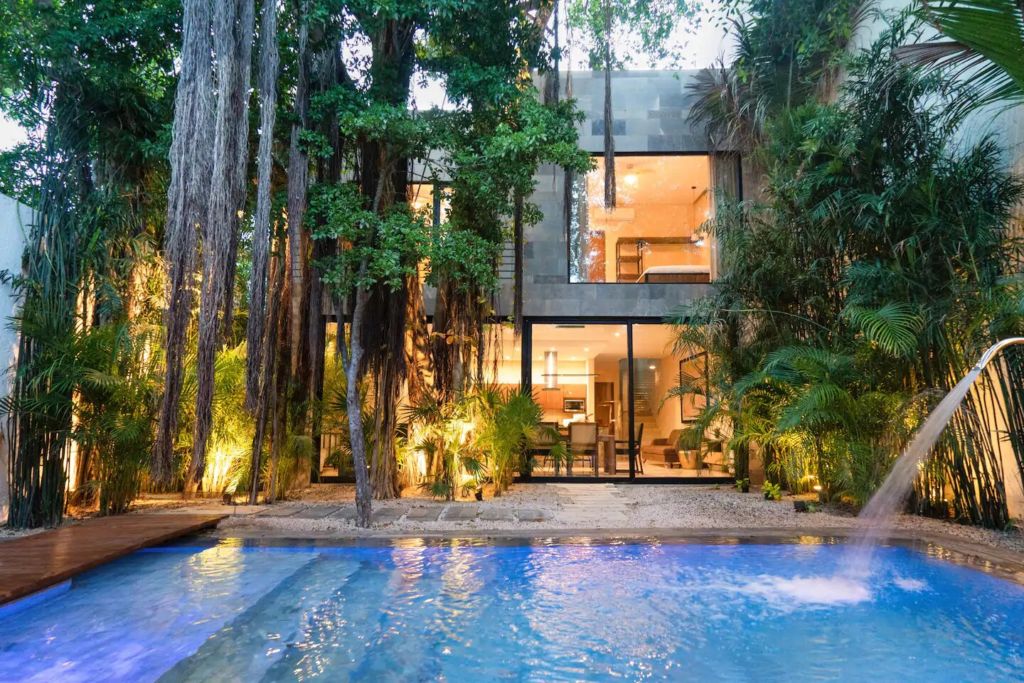 Ubicado dentro de la comunidad cerrada de Playacar, su piscina y ambiente selvático ofrecen un landscape inigualable para unirte con la naturaleza y disfrutar en un hospedaje increíble. Por parte de Airbnb luxe, está disponible este paraíso que incorpora arquitectura contemporánea e ingeniería tradicional en un escape natural.