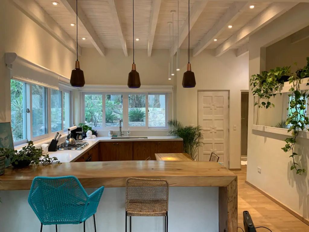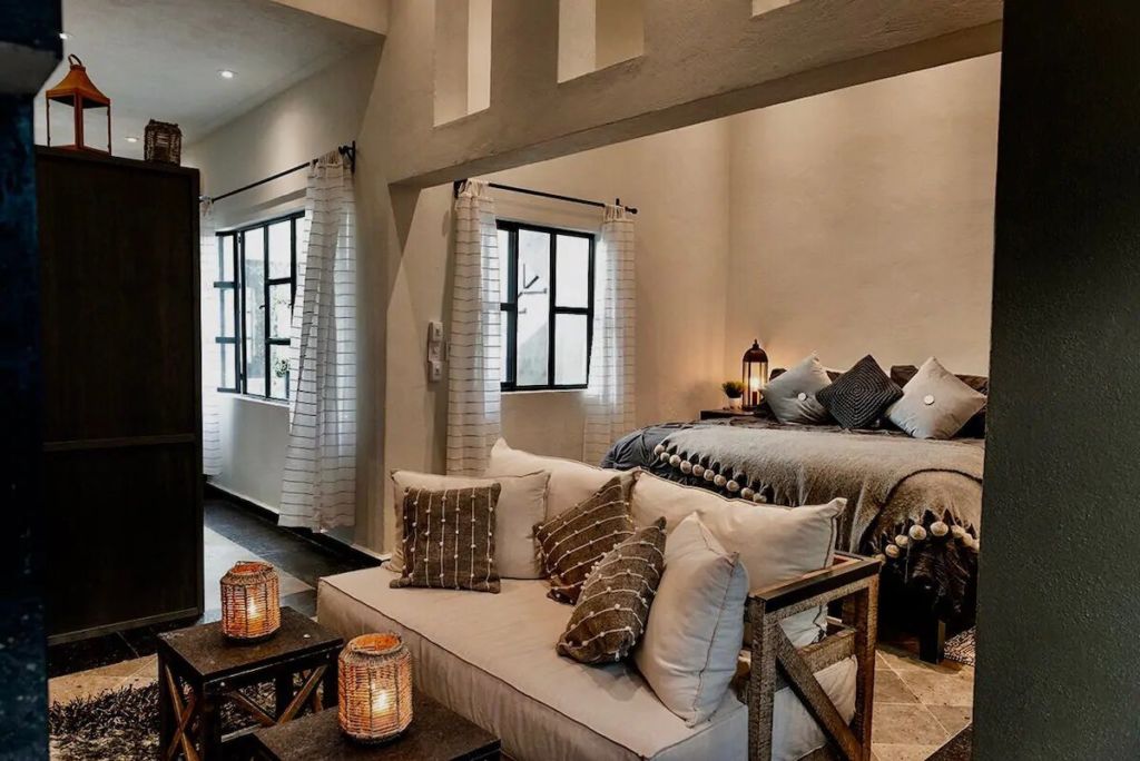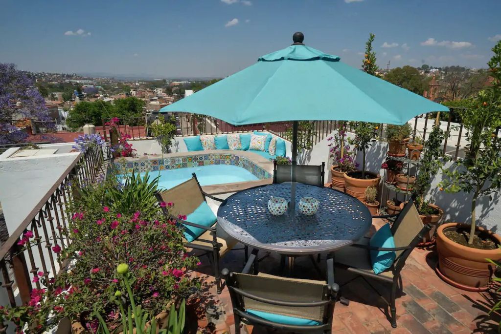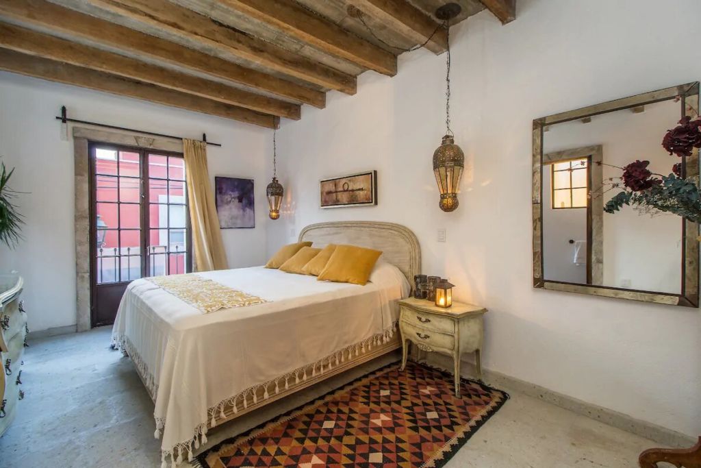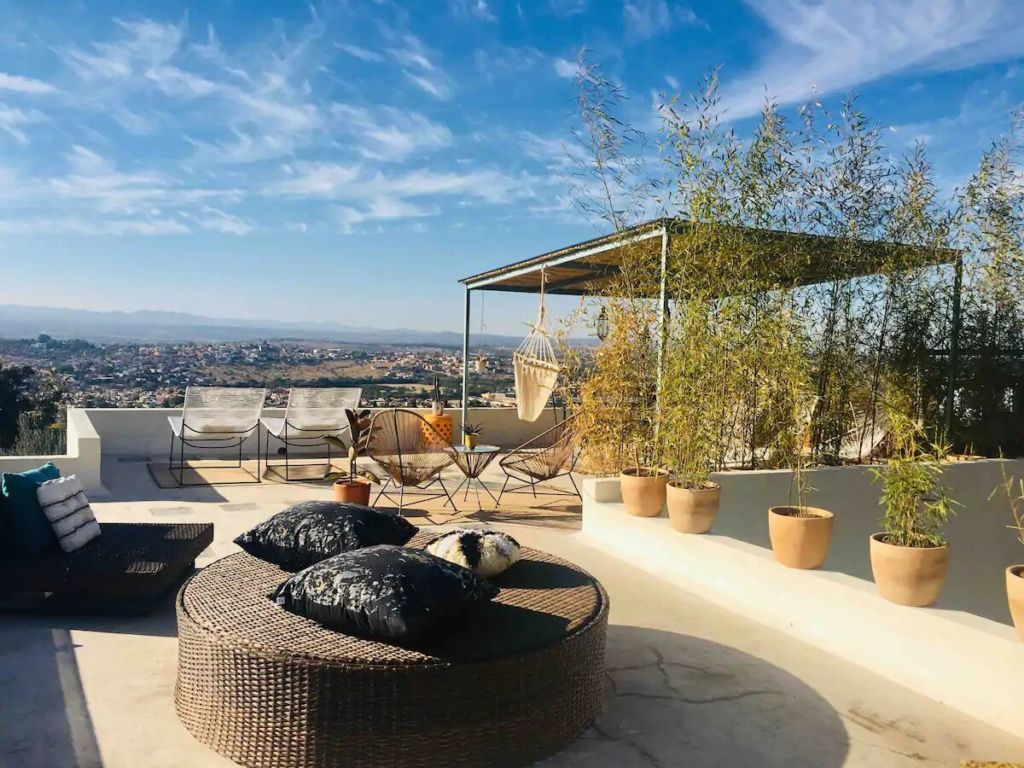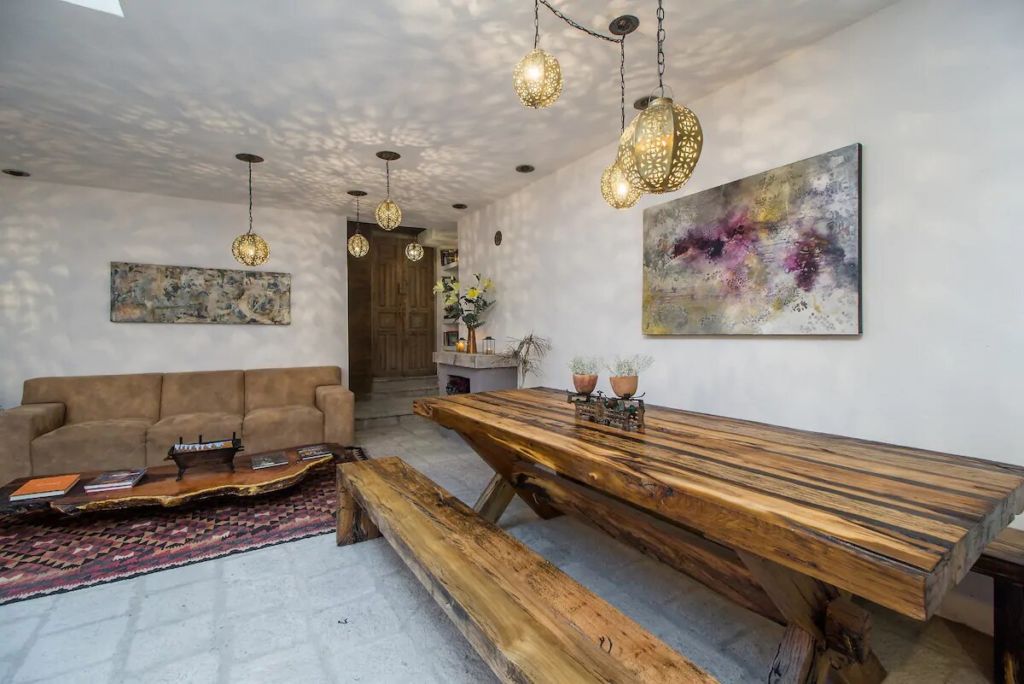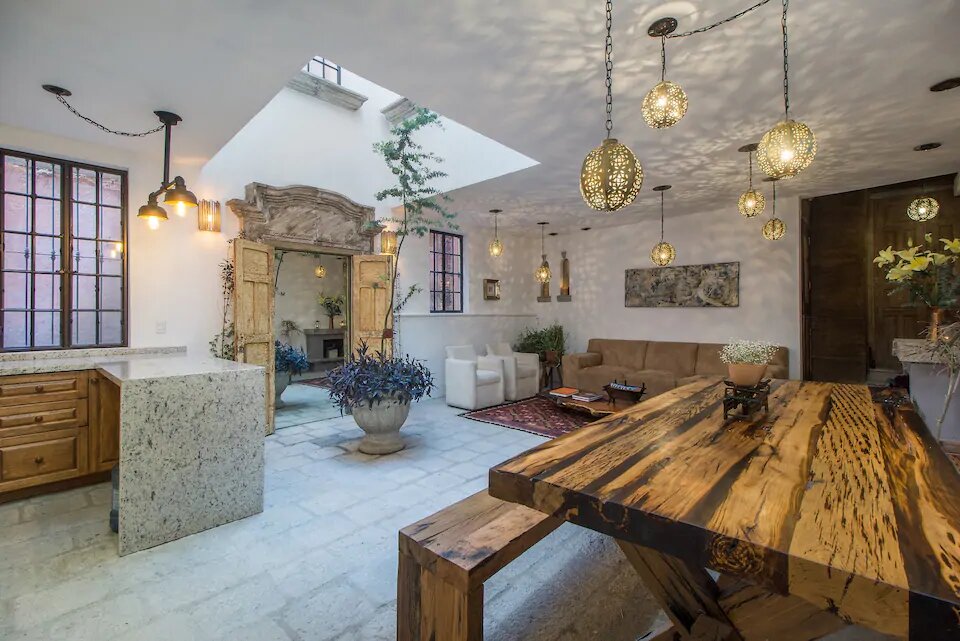 Esta romántica casita presume el título de uno de los mejores Airbnb’s en México 2020 por Condé Nast Traveler. Es un auténtico oasis vacacional, ubicado a tan solo 10 minutos a pie del centro de San Miguel de Allende. Con un concepto de estancia abierta y un hermoso diseño bohemio, el lugar es una combinación entre decoración antigua y ecléctica, colmado de textiles tradicionales mexicanos, arte local, y pequeñas palmeras y cactus.