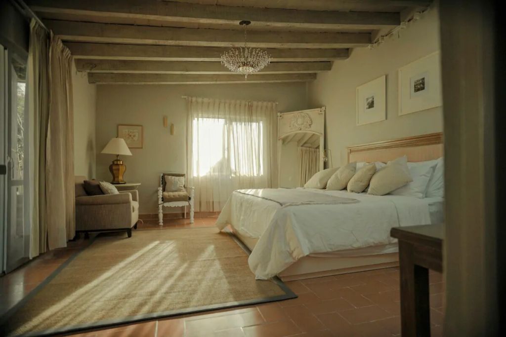 Casa Guadalupe cuenta con bellísimas suites que hacen honor a la hermosa ciudad de San Miguel de Allende. Su lujoso alojamiento en Airbnb detenta todas las amenidades necesarias para garantizar un hospedaje inolvidable, con una espaciosa habitación, cocina completa, área de trabajo, balcón y patio central. Su estilo está cuidado hasta en el más mínimo detalle, con un diseño colonial con toques modernos, así como canteras que recorren toda la casa y le dan una sensación antigua y tradicional.