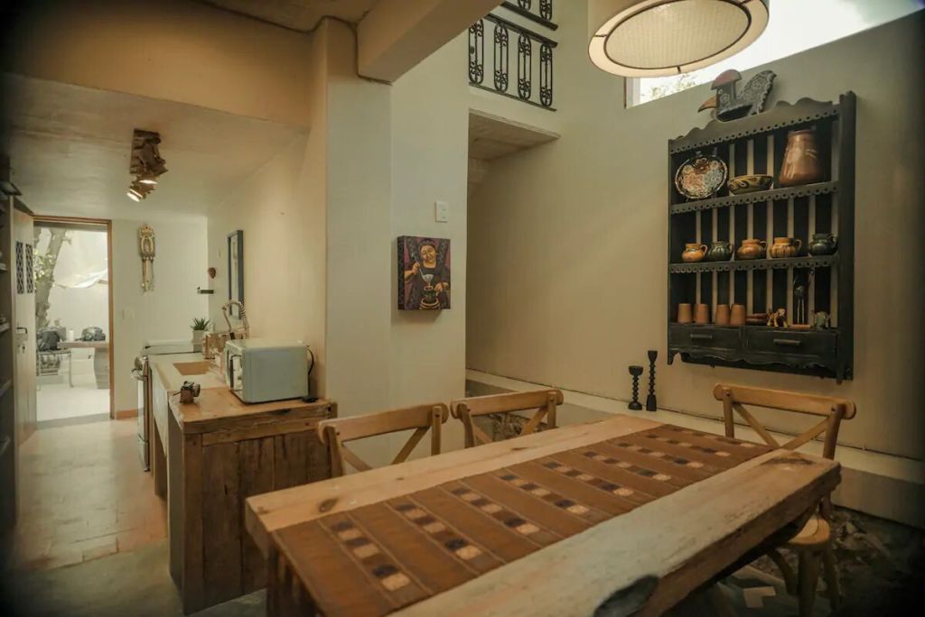 Aparte de ser un lugar cálido y acogedor, este Airbnb distingue la cultura prehispánica de México con su hermosa y tradicional decoración. Se encuentra justo a un lado del Parque Juárez, a pocos pasos de restaurantes, bares, galerías de arte y los sitios más emblemáticos de San Miguel de Allende. El alojamiento cuenta con cocina y comedor de estilo mexicano, así como una gran habitación principal cuenta con terraza al aire libre y vista al Pueblo Mágico.