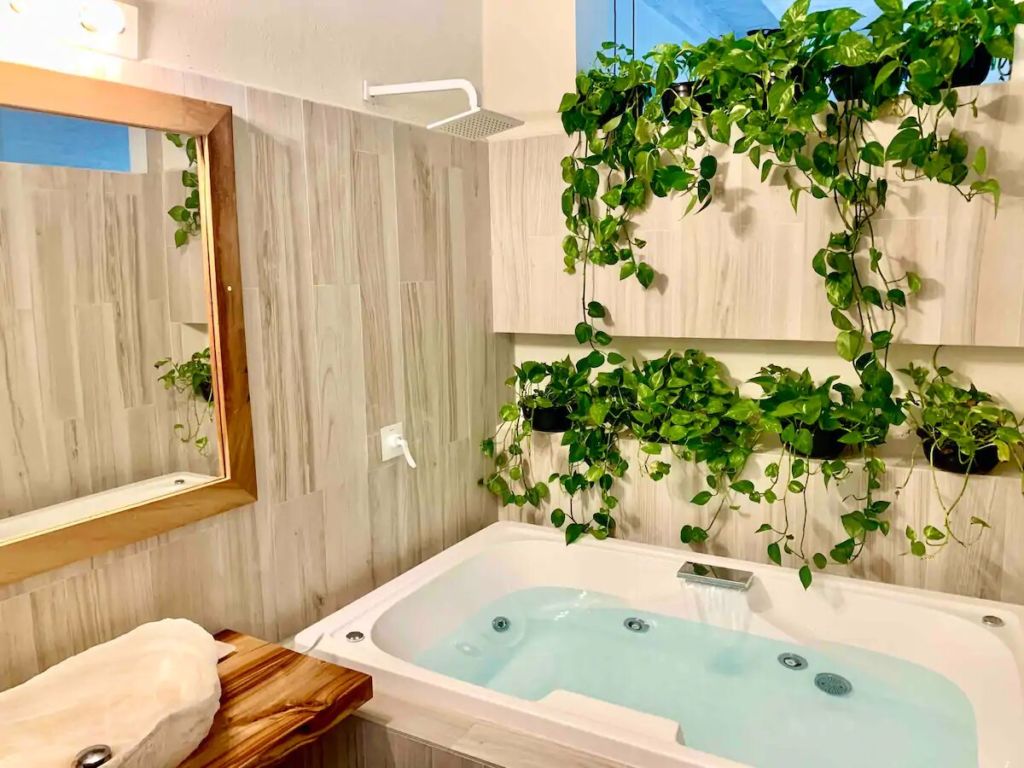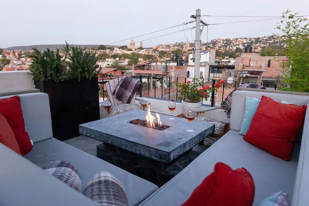 Este alojamiento es uno de los Airbnb’s más románticos de San Miguel de Allende por su impecable estilo y exclusivas instalaciones. Establecido dentro de un moderno y elegante espacio, es el lugar ideal para disfrutar de una estancia auténtica y con todas las comodidades necesarias. Podrás consentirte en su spa al aire libre, disfrutar de una tranquila velada en su terraza, o relajarte en su acogedora sala de estar con chimenea.