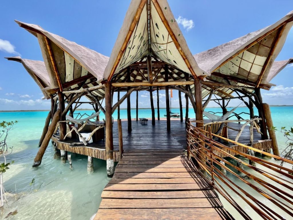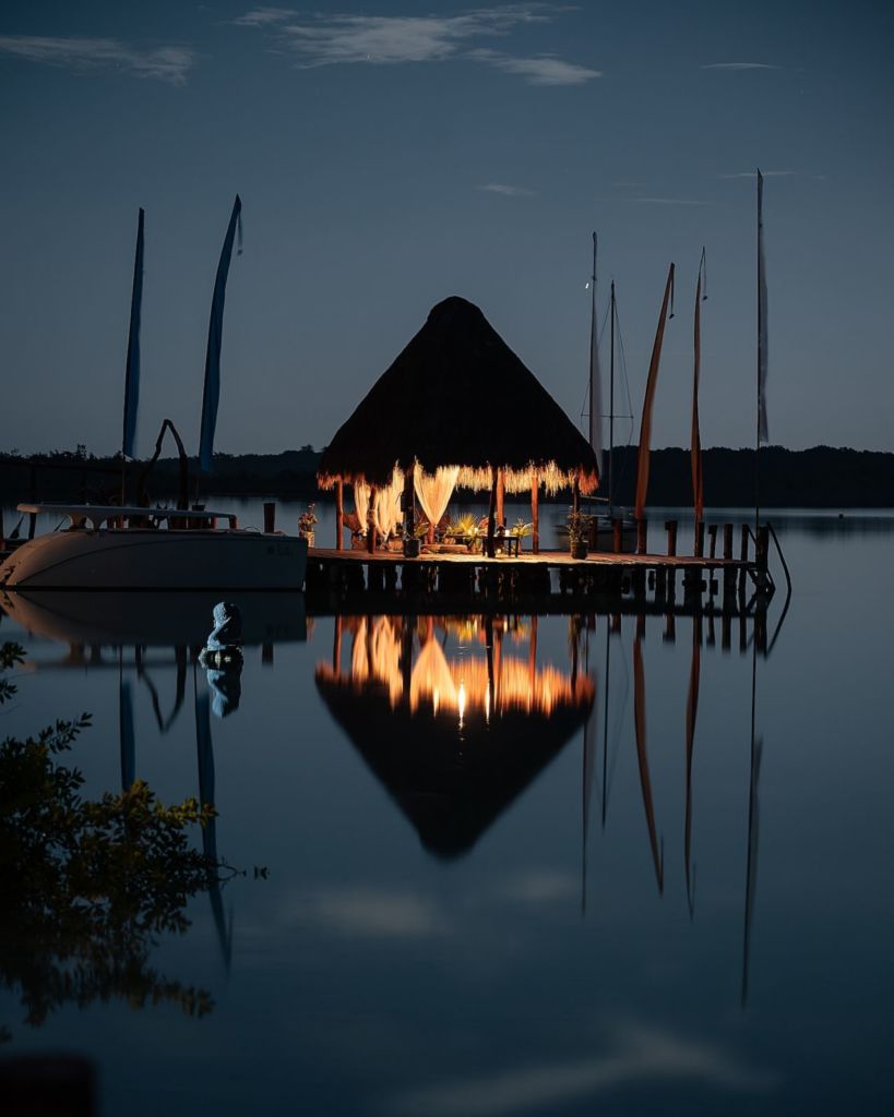 Este hotel flotante en Bacalar se encuentra dentro de un centro holístico; un espacio lleno de paz y tranquilidad en el cual podrás disfrutar bellos escenarios de la Laguna de Siete Colores, en Bacalar. Este eco hotel enclavado en medio de la selva, tiene una arquitectura que trabaja con materiales reciclados y sustentables que en conjunto con sus espacios abiertos te permitirán relajarte con todo el lujo y confort de un hotel boutique.