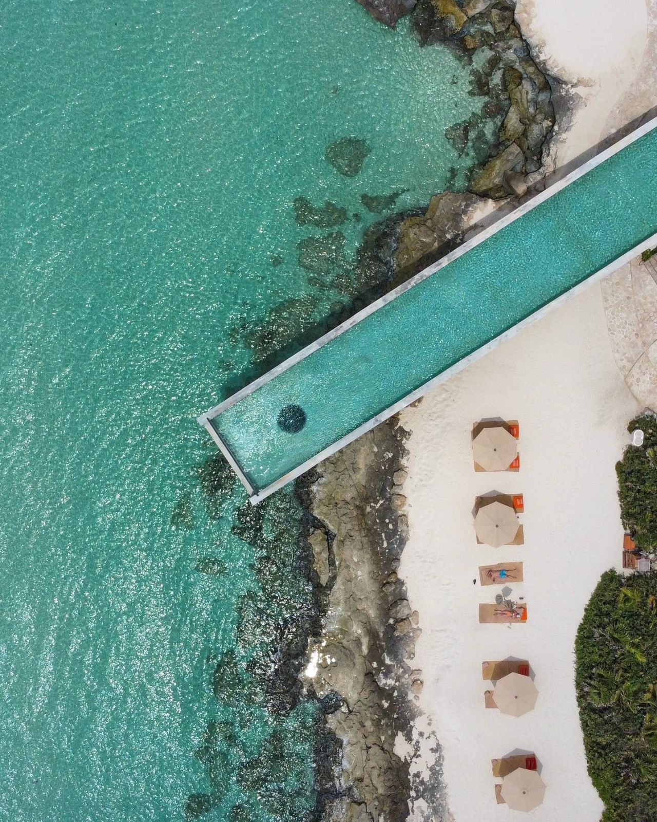 El Hotel Casa de la Playa es considerado como uno de los resorts de lujo más espectaculares de la Riviera Maya. Su perfecta ubicación frente al mar caribe y sus aguas azul turquesa han enamorado a todos quienes la visitan. Uno de sus principales atractivos es su ‘piscina infinita’, una construcción de concreto que se extiende hasta 40 metros hacía el océano, que sobresale de la orilla de la playa, y que la ha convertido en una de las albercas más bonitas de México. Aquí, también destaca su piscina de cristal ubicada en el rooftop, que conecta de un edificio a otro y que queda suspendida en el aire, mientras se disfruta de las mejores vistas de la región–son tan perfectas para tomarte fotos y subirlas a Instagram–.