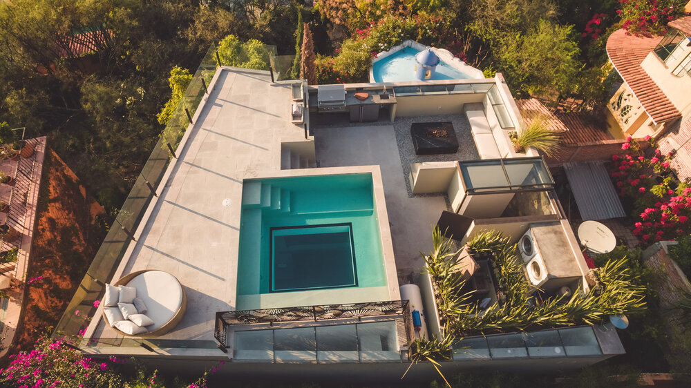 Casa Karina es un alquiler de vacaciones para seis huéspedes que combina a la perfección características de diseño contemporáneo con elementos rústicos llamativos. Es precisamente esta mezcla de estilos lo que hace que este bonito alojamiento se sienta acogedor desde el primer momento. Uno de los aspectos más llamativos de este lugar es su maravillosa terraza con vistas increíbles de la ciudad. Asimismo, en este espacio hay una pequeña piscina que tiene vista al interior de la casa, ya que tiene piso transparente. Lo mejor de todo es que el agua de la alberca se puede calentar a temperaturas de spa, para así asegurar momentos de relajación. El alojamiento también cuenta con un asador en esta área de azotea, ideal para disfrutar de una comida al aire libre.