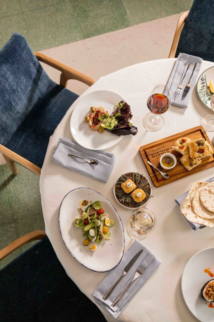 Aunque la frescura del producto es uno de los mayores atributos de Alesia, aquí el chef ha explorado diversos métodos de cocción y conservación para desarrollar su carta que abarca todo el Mediterráneo, no solo Grecia, Italia o España. Entre los platillos del mar y la tierra, destaca el pescado a la sal servido con salsa meuniére y ratatouille, el salmón canadiense sellado con mantequilla ahumada, pistaches y cítricos, el fettuccine alla carbonara y el pollo en mojo de ajís con salsa de morcilla y cerveza.