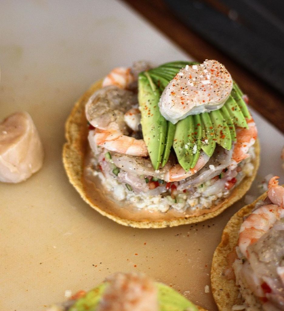 Desde su inicio como dark kitchen hasta su evolución como una panguita muy encantadora en la colonia Roma, Mi Compa Chava se ha convertido en uno de los restaurantes de mariscos favoritos en la CDMX, esto gracias al cuidado de su producto y el increíble sabor de sus preparaciones. Mucho en su menú es sustancioso y abundante, pero definitivamente su ‘Tostada Cachetona‘ se lleva el título al ser una opción fresca y llena de sabor de mar; se prepara con jaiba fresca, ceviche de dorado y callo catarina, camarón curtido, camarón cocido, aguacate y callo de hacha, para después bañarse con soya ahumada, chile serrano y chile chiltepín.