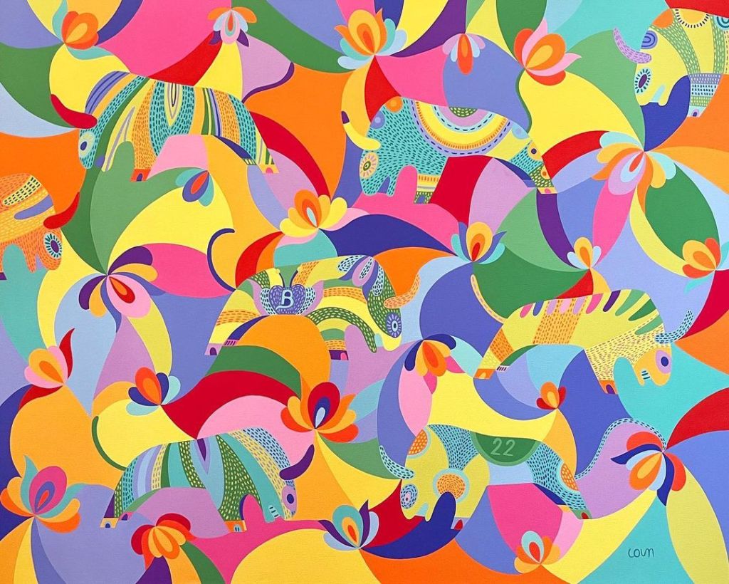 Lourdes Villagomez es una de las artistas contemporáneas que muestra en cada una de sus obras un amor profundo por sus raíces mexicanas. Trabaja con algunos de los simbolismos más representativos del patrimonio cultural del país, como jaguares majestuosos, calaveras vivas, naturaleza mágica y retratos célebres, lo que resulta en maravillosos murales de colorido espectacular. La artista también es cofundadora de Somos Leyenda, una tienda de honra a la cultura mexicana con artículos como almohadas, tote bags, chaquetas, mochilas y más.