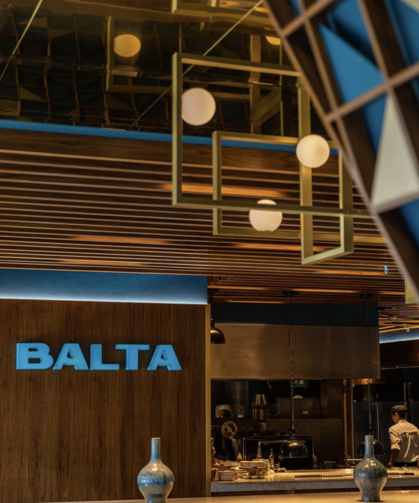 Al llegar a Balta lo primero que notas es su enorme barra, la cual se encuentra enfrente de su cocina abierta, esta distribución es ideal si quieres ir a comer solo o en pareja, ya que podrás ver el vaivén de los cocineros y mixólogos. Parte del encanto de Balta es su impecable servicio y la mini cafetería que tienen en el pasillo principal, en la cual podrás probar las mejores creaciones del lugar.