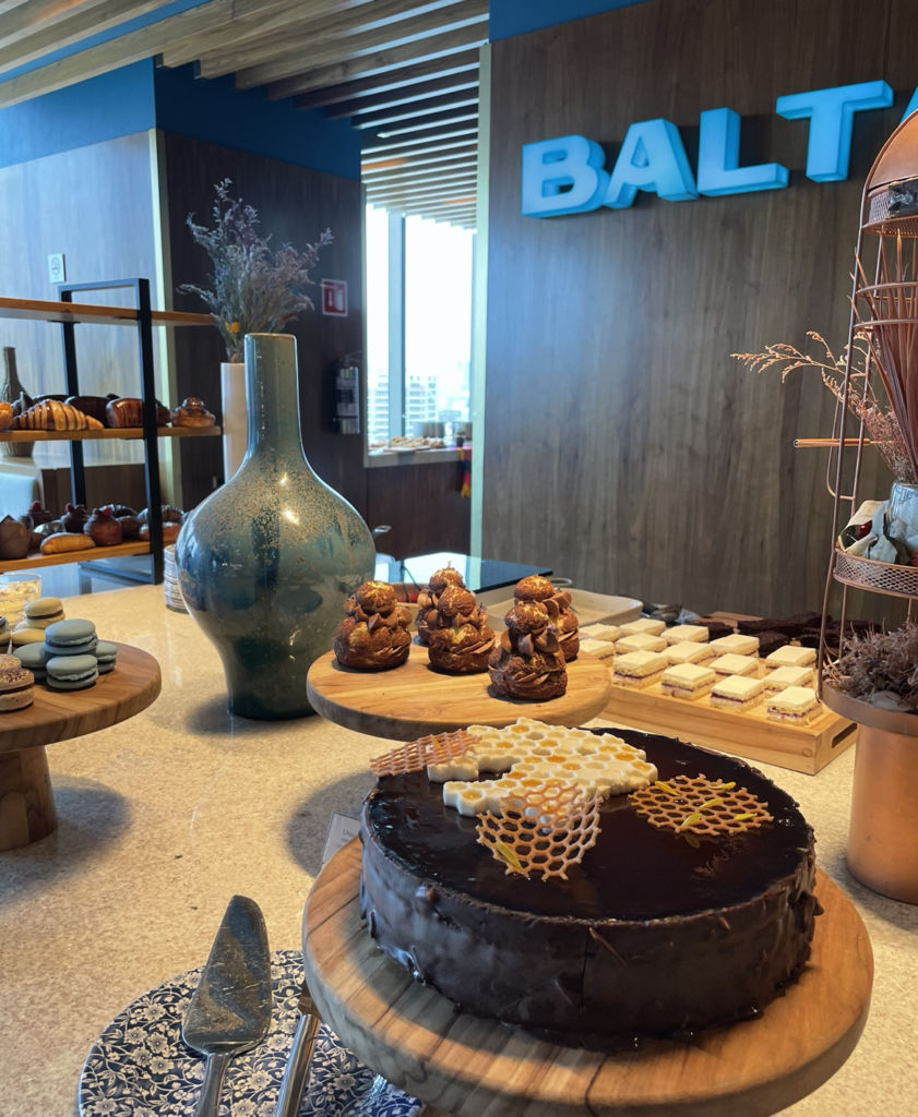 Aquí los panes de masa madre y la repostería francesa, se pueden comer ahí o llevar a casa. En Balta las mesas tienen una vista increíble a Paseo de la Reforma, y están divididas en tres espacios principales, las primeras frente a los ventanales principales, desde las cuales puedes ver la cocina y la barra, las segundas en el pasillo principal y las más deseadas en el salón principal que tiene la vista más increíble ya que sus ventanales dan hasta el piso.