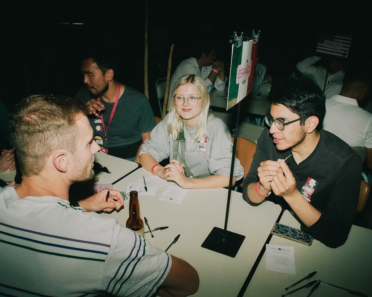 Una parte divertida de la dinámica es que cada mesa tiene tarjetas con preguntas para romper el hielo, por si no sabes de qué hablar. También hay un área donde se juega beer pong, para que, si te cuesta soltarte, puedas hacerlo jugando. Y, claro, recuerda que estás en un bar, así que puedes pedir unos buenos tragos para entrar en confianza y que se te suelte la lengua. Puedes ir acompañado, pero también está bien ir solo, pues Discourse es un lugar para hacer amigos y no es necesario que domines un idioma completamente, ya que puedes ayudar a otros a practicar su español. La recomendación es llegar temprano para aprovechar al máximo el tiempo de intercambio de idiomas y conocer más gente, además de que el ambiente es increíble, porque todos están en mood de hacer nuevas conexiones.