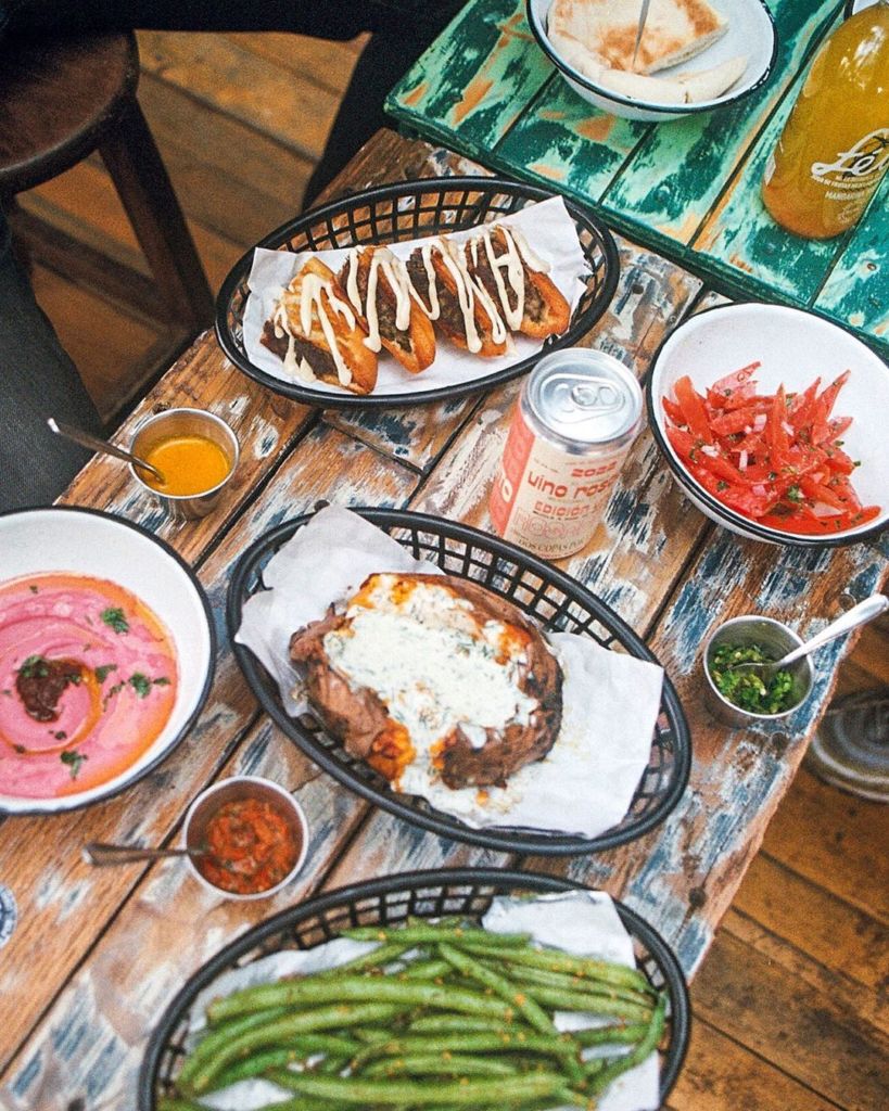Ahora bien, como su nombre lo indica, aquí los reflectores se los llevan las pitas, que además son una excelente opción para pedir para llevar e ir comiendo mientras paseas por la Condesa. Aquí hay de todo y para todos: pita de Arrachera —con hummus rosado, tabulé, pepinillos encurtidos y, por supuesto, Arrachera—, pita con Schnitzel —rellena de milanesa de pollo empanizada en Panko, ensalada israelí y hummus rosado—, pita de camarón crujiente —con mayonesa casera de ajo rostizado y ensalada fresca— e incluso pita vegana —sin ingredientes de origen animal y con toques mexicanos—.