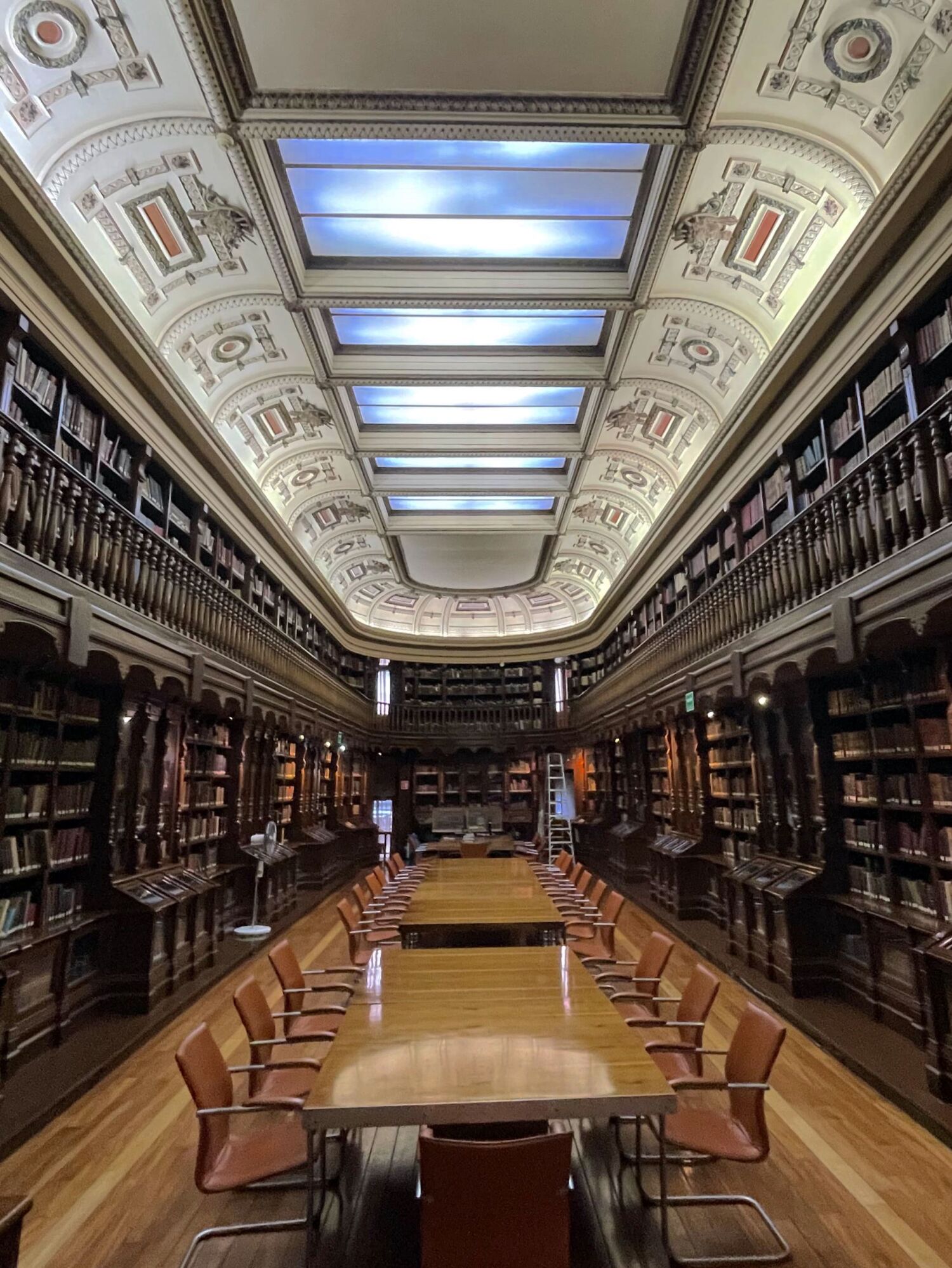 Antes de entrar en detalles, vale la pena conocer un poco más sobre el origen de este hermoso edificio y su biblioteca. El Palacio de Minería, una de las obras más emblemáticas del arquitecto y escultor Manuel Tolsá, fue construido entre 1797 y 1813 para albergar el Real Seminario de Minería y el Real Tribunal de Minería. El espacio que hoy ocupa la Biblioteca Ing. Antonio M. Anza fue en su momento la Oficina de Ensayo de Materiales, donde los ingenieros realizaban investigaciones y pruebas de calidad sobre nuevos materiales de construcción, como el acero y el concreto. El ingeniero Antonio Anza fue el responsable de fundar e instalar este laboratorio pionero de ingeniería civil, y por ello la biblioteca lleva su nombre. Durante la restauración del palacio en los años 70, el espacio se convirtió en la biblioteca que es hoy, conservando su decoración original, como la estantería de madera fina que le da un aire de solemnidad y belleza. Actualmente, el Palacio forma parte de la Facultad de Ingeniería de la UNAM.