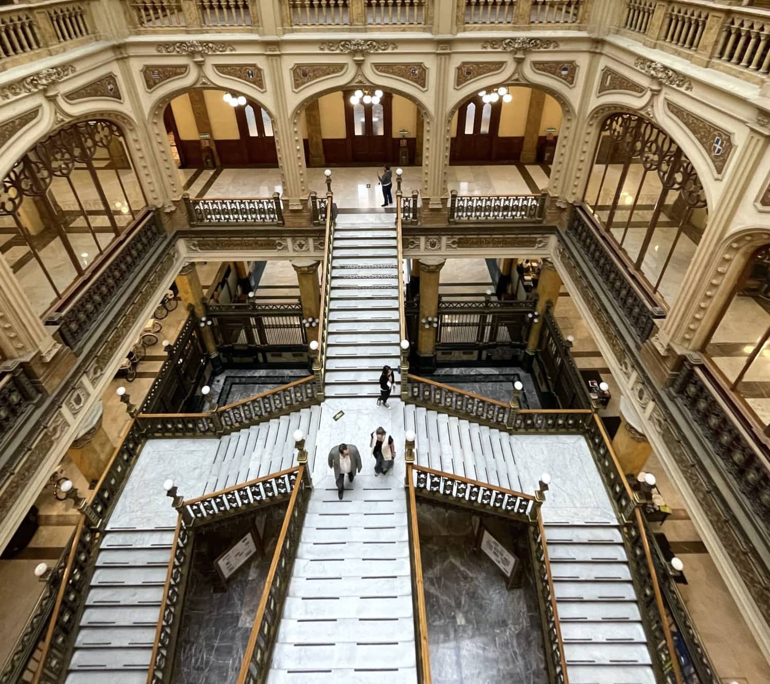 Seguramente más de una vez, caminando por el Centro Histórico, el Palacio Postal te ha robado la mirada. Tal vez incluso has entrado por pura curiosidad a su planta baja, ese vestíbulo bullicioso que, aunque los tiempos han cambiado y casi nadie manda cartas, sigue funcionando como oficina de correos. Pero lo que quizá no sabías es que no todo termina ahí. Pocos saben que es posible subir al segundo y tercer piso, donde se esconde un museo postal y una biblioteca secreta que muy pocos han explorado. Así es, puedes subir por las famosas escaleras de mármol blanco, flanqueadas con la herrería ornamental de bronce y cubiertas por un tragaluz, para descubrir lo que guarda este tesoro arquitectónico más allá de su imponente fachada.