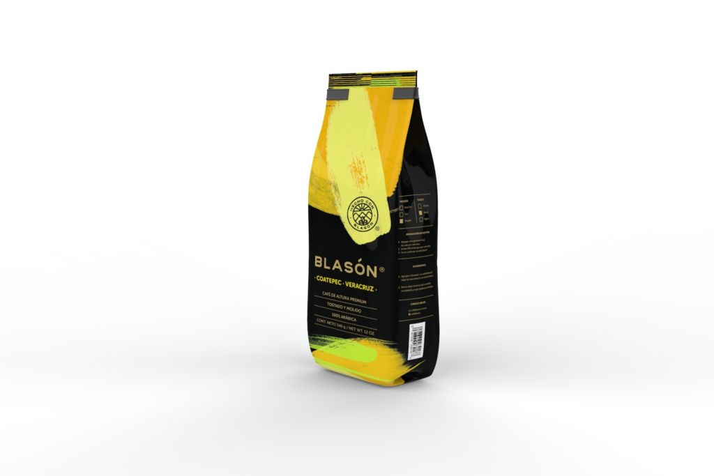Blasón Coatepec, Veracruz.- Con sabor intenso y notas de chocolate y caramelo, podrás encontrar este fuerte y delicioso café dentro de un empaque con pinceladas de color amarillo.