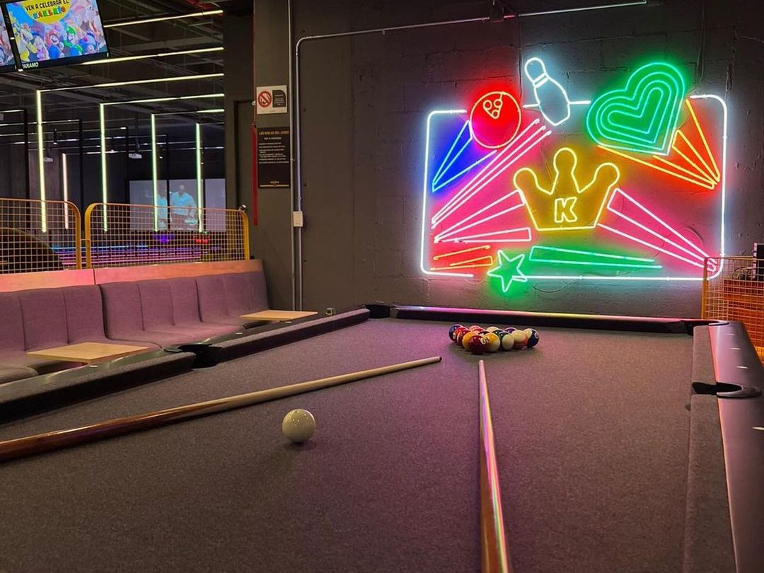 Ubicado dentro de Plaza Miyana en Polanco, Kingpin Social es uno de los sitios donde jugar boliche en la CDMX destacable por lo colorido y moderno de sus instalaciones. Cuenta con áreas de bowling, comida, drinks y sports, todas decoradas con luces neón que le brindan una atmósfera bastante divertida a sus espacios. Lo mejor de todo es que se puede hacer una reservación previa a la visita, esto para asegurar un lugar en alguna de sus pistas.