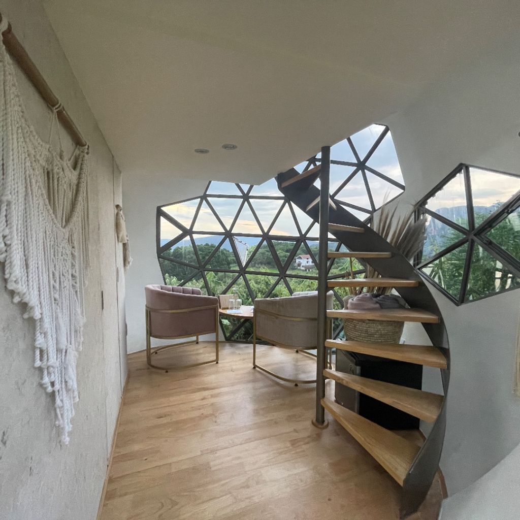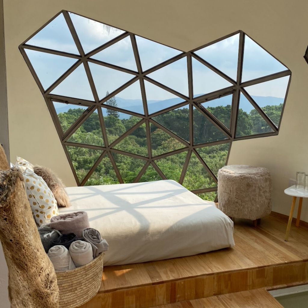 Si quieres disfrutar de unas vacaciones cerca de la ciudad tienes que conocer Bosque Geométrico, uno de los hoteles boutique más bonitos de Tepoztlán. Este espacio cuenta con 10 cabañas inspiradas en la geometría sagrada, cada una de ellas con un diseño único y acogedor, ideal para que vayas en pareja. Recientemente inauguró tres esferas estilo nido súper futuristas y estamos seguras que vas a querer conocerlas.