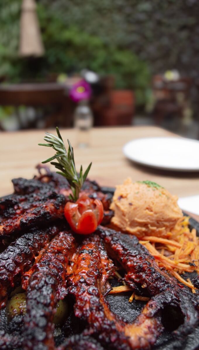 Para los platos fuertes, te recomendamos probar los camarones al coco con salsa de mango-habanero, que fusionan ese ‘picosito’ delicioso con la dulzura del mango y el coco. Si lo prefieres, puedes pedir la pesca del día —traída de Sinaloa—, que se prepara al gusto. No puede faltar la mojarra frita, ni el pulpo zarandeado cocinado a la perfección.