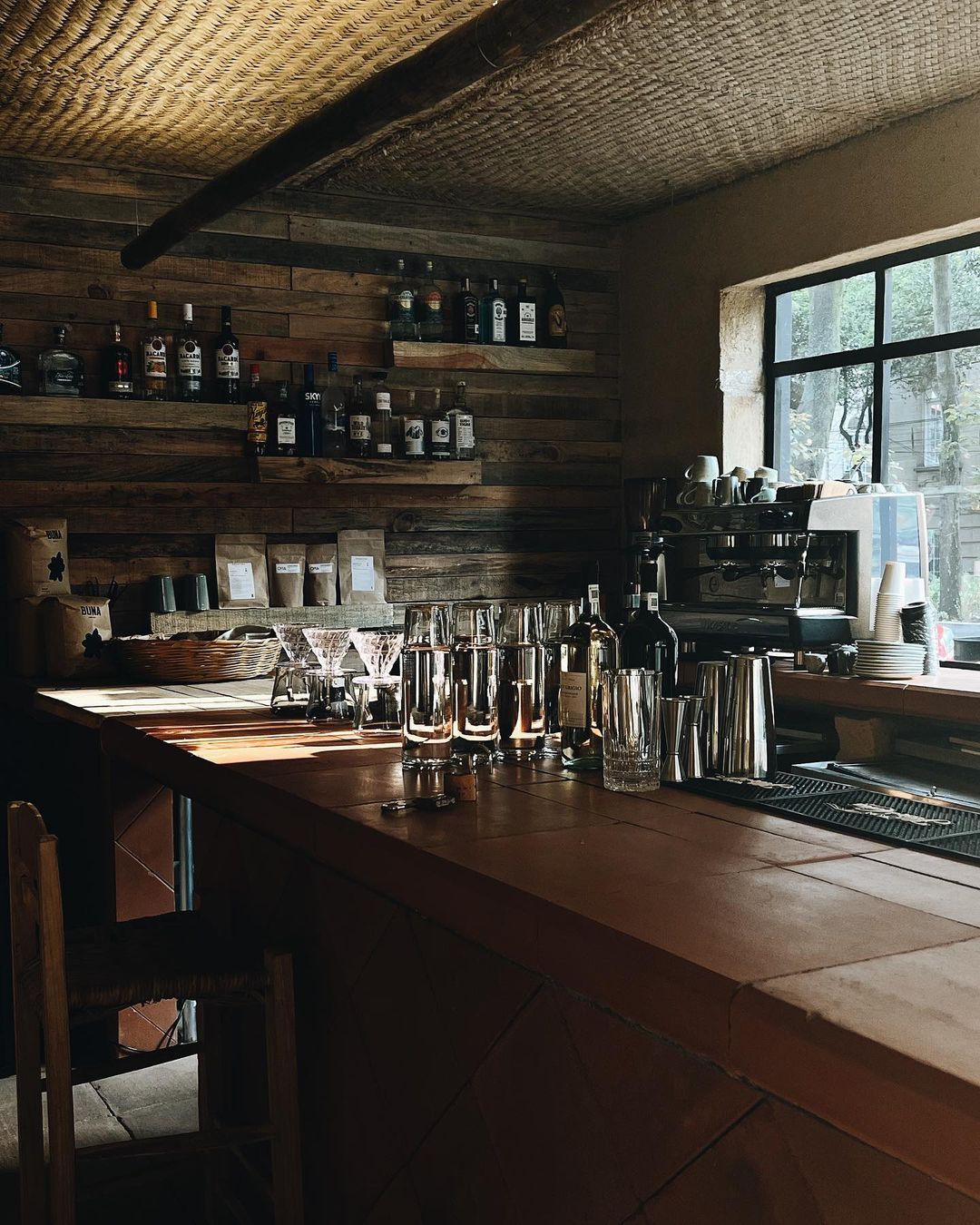 El diseño interior de Brew Brew Café es un equilibrio perfecto entre modernidad y calidez. Con detalles industriales, paredes de ladrillo y sillas de madera, el lugar invita a la relajación y a disfrutar de un gran brunch en la CDMX. Grandes ventanales permiten que la luz natural ilumine el espacio creando una atmósfera que se presta tanto para encuentros con tus personas favoritas como para sesiones de trabajo más productivas.
