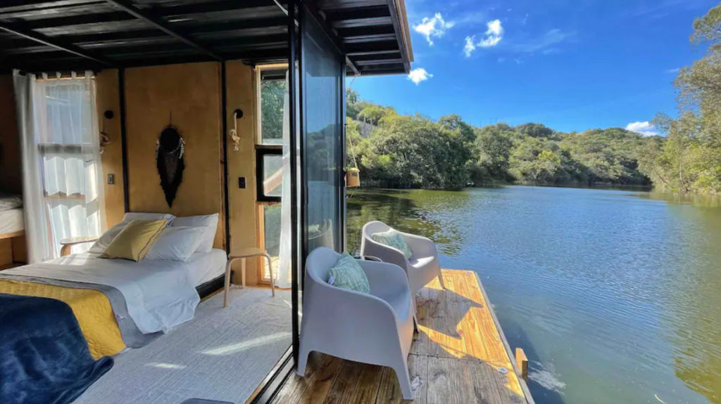 Con vista a cientos de árboles de eucalipto, jacaranda y encino y por supuesto, al lago y los volcanes que lo rodean, esta cabaña flotante se ha convertido en uno de los spots favoritos de muchas parejas por su encantador diseño único y alejado de cualquier ruido.