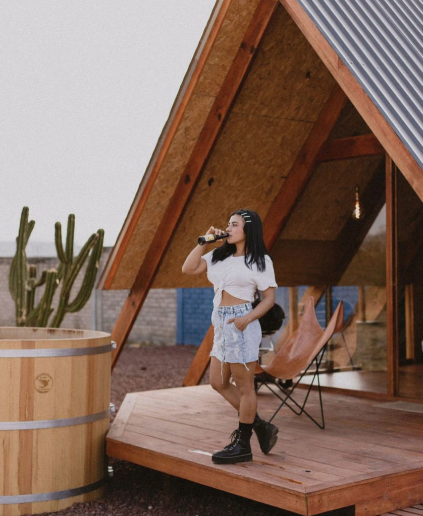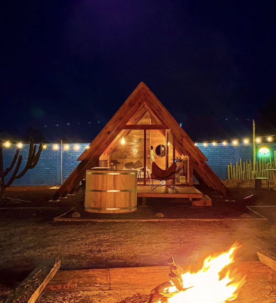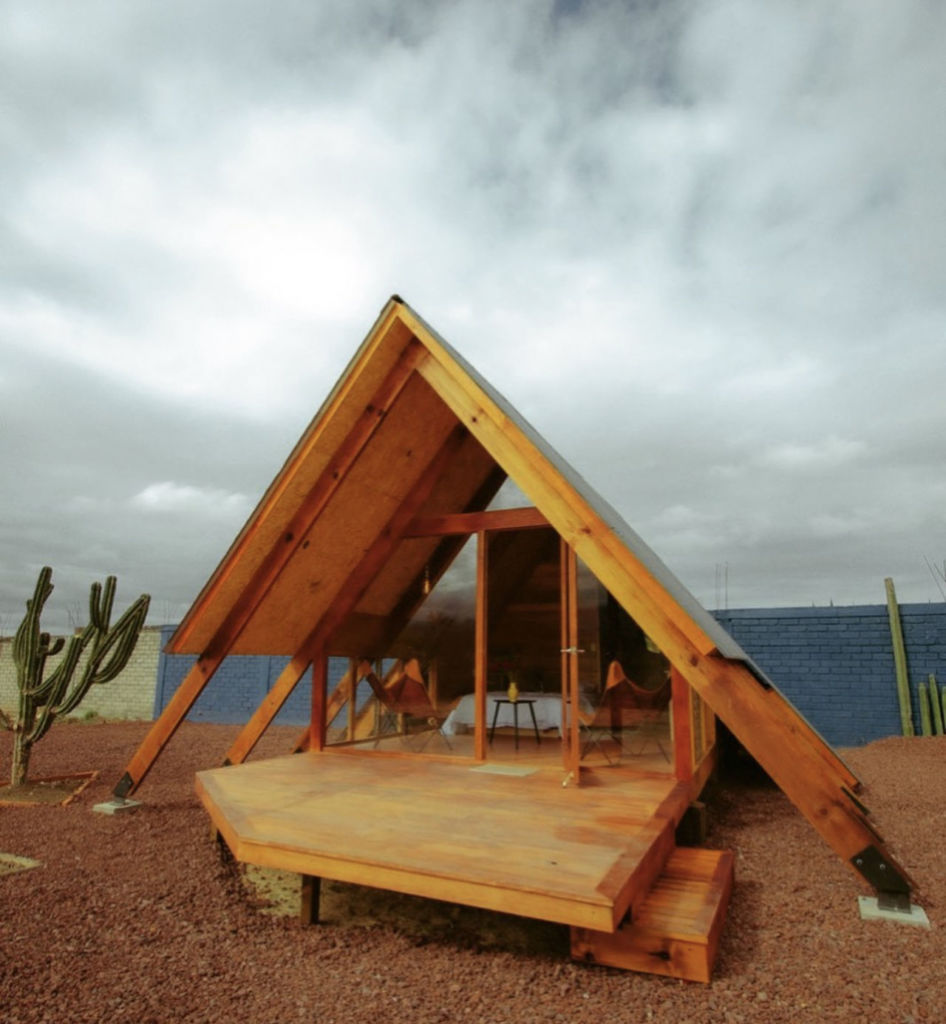En esta cabaña súper instagrameable, pasarás momentos inolvidables con tu pareja, disfrutando sus amplios espacios, las amenidades de lujo y una tina al aire libre en la cual podrás beber una copa de vino mientras observas las estrellas. Su forma triangular te permitirá ver los amaneceres de los Valles Centrales de Oaxaca, desde tu cama.