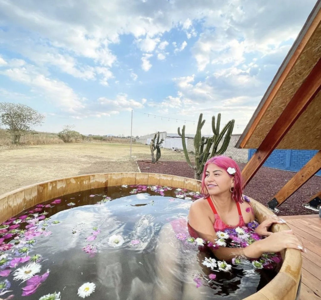 Además su tina en forma de barril será el complemento para un viaje lleno de romance. Si tienes mascotas este espacio te encantará, ya que cuenta con un amplio jardín donde tu mascota, podrás correr y pasarla increíble. En esta cabaña podrás festejar tu cumpleaños, aniversario o hacer una pedida de mano muy original.