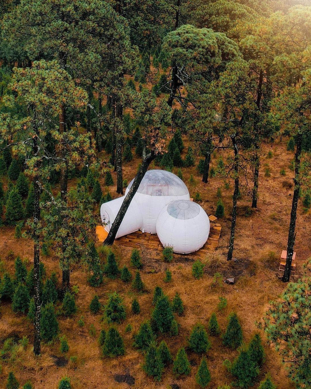 Más que unas cabañas en el Ajusco, Alpino Bubble Glamping ofrece una experiencia sin igual, ya que se trata de un maravilloso hotel burbuja enclavado justo en medio del bosque. Este sitio ofrece un espacio de desconexión total, a través de encantadores alojamientos pequeños y sumamente cómodos, que destacan por su peculiar forma circular y por contar con un techo transparente que permite dormir casi bajo las estrellas.