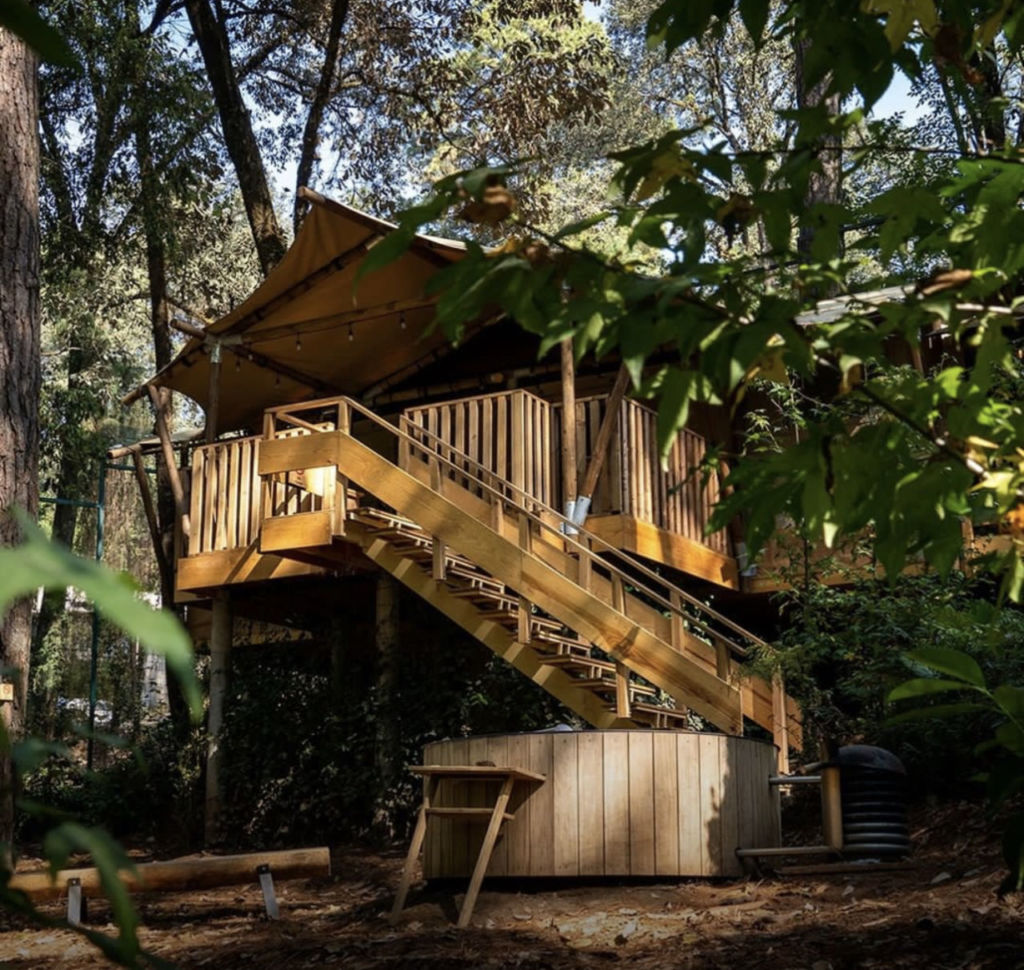 Una experiencia de glamping única en México, ya que cada cabaña está creada para que conectes con la naturaleza y disfrutes los bellos paisajes de Avándaro. El jacuzzi se encuentra al aire libre y es perfecto para ver los atardeceres o simplemente disfrutar el entorno rodeado de pinos y encinos. Si no quieres cocinar, puedes optar por comer en su restaurante, el cual ofrece cocina orgánica con ingredientes cosechados en la zona.
