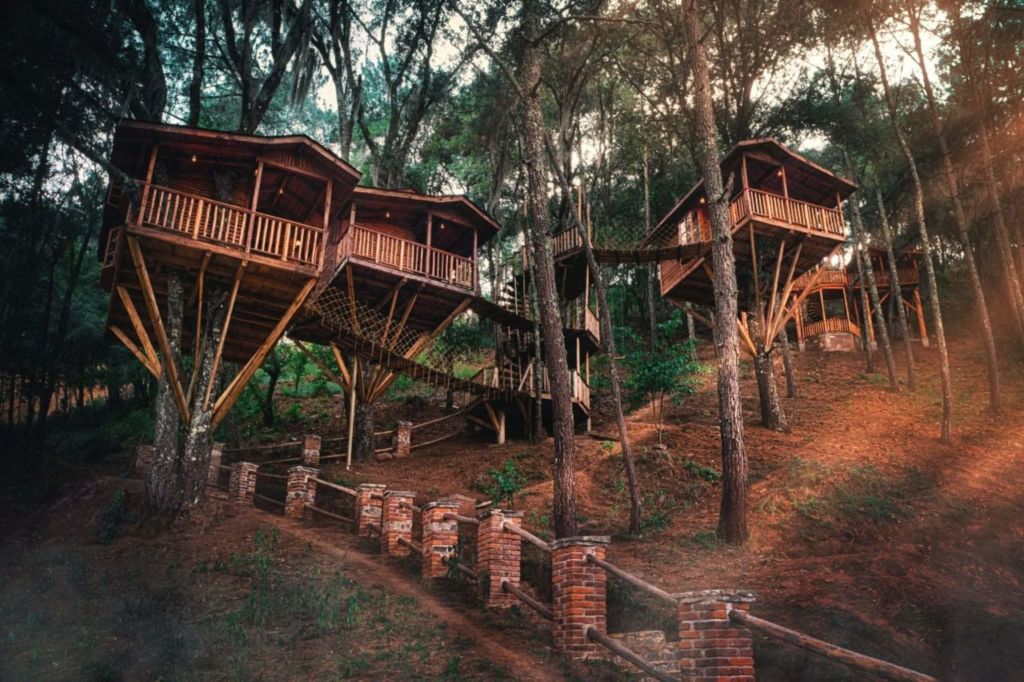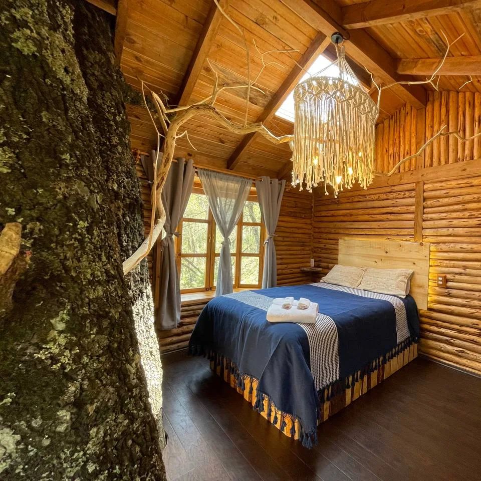 Estas maravillosas cabañas en Zacatlán de las Manzanas brindan a sus huéspedes la posibilidad de hospedarse dentro de una preciosa casa del árbol, pero con las comodidades necesarias para disfrutar de una estancia confortable y especial. Son perfectas para quienes busquen una experiencia de conexión con la naturaleza, ya que sus alojamientos cuentan con balcón para apreciar los escenarios boscosos, puentes colgantes y un estilo rústico bastante acogedor.