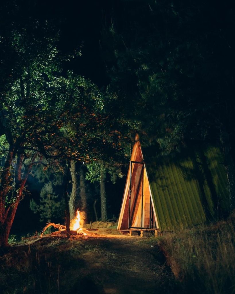 Monina es un precioso campamento al aire libre donde disfrutar algunos de los escenarios naturales más bonitos en Zacatlán de las Manzanas. Lo que hace tan especial a sus alojamientos es que tienen una forma triangular bastante íntima y peculiar, decorados con lucecitas colgantes y un estilo rústico que compagina perfectamente con su entorno; pasarás la noche bajo un cielo completamente estrellado, ya sea acogedoramente al interior de sus cabañas, o bien disfrutando el calor de su fogata en la terraza.