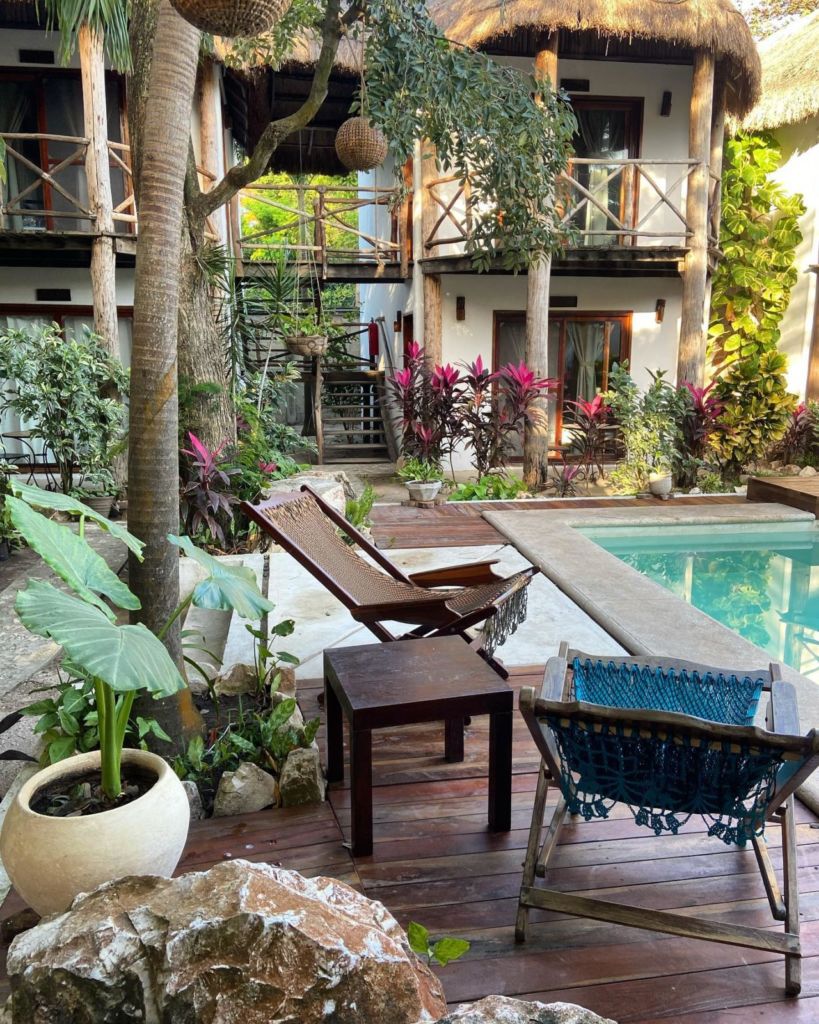 Cada una de las cabañas románticas cuenta con cama king, baño privado, y amenidades básicas para una estancia cómoda y acogedora. Sus techos en paja y balcones en madera, se mezclan con la naturaleza para darte un entorno de serenidad. Además cuenta con un restaurante abierto de cocina tradicional local y una alberca central rodeada de vegetación. Durante tu estancia podrás contratar paquetes de tours con los locales, para hacer recorridos en lancha o kayak por los manglares y la isla.