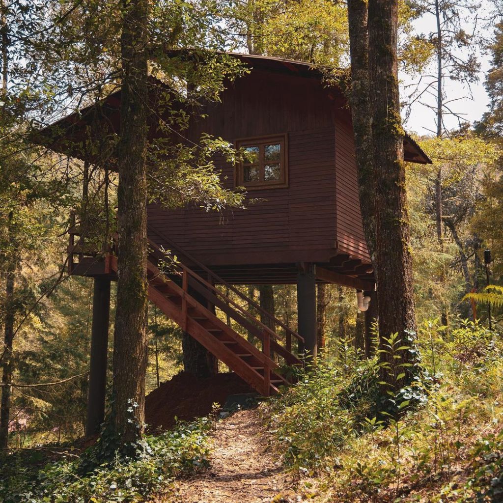 Estas románticas cabañas en los árboles se encuentran en Acaxochitlán, Hidalgo. Cada una de las cinco cabañas de Agua Morada está equipada con una cama matrimonial, una litera con dos camas individuales, baño completo y una terraza con vista al bosque. Prepárate para un fin de semana lleno de diversión – además de romántico – con tu pareja porque también cuentan con un restaurante donde preparan deliciosos platillos con productos locales, senderos para caminar y zona de fogatas para disfrutar juntos del cielo estrellado.
