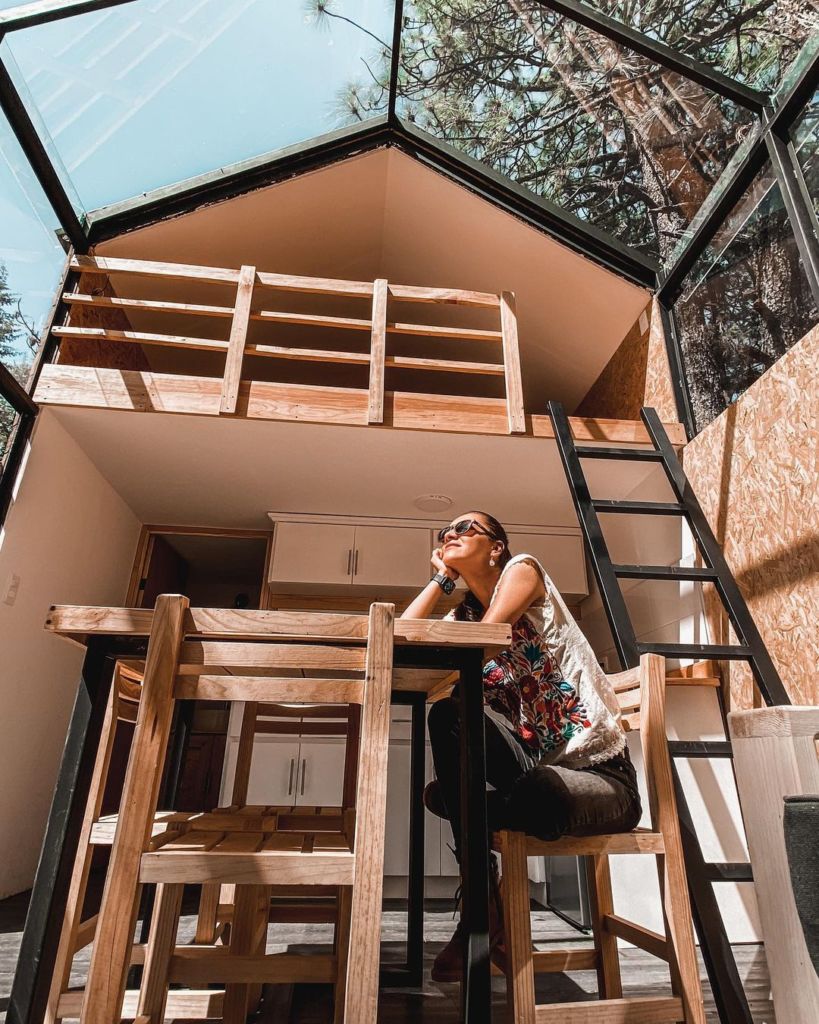 TinyGrinHouse es un conjunto de cabañas boutique inmersas en el bosque, a unos 10 min. aprox. de Mineral del Chico y Real del Monte, ideales para compartir en pareja. Podrás elegir entre sus 7 cabañas diferentes y disfrutar una experiencia única en estas cabañas con diseño exclusivo y rodeado de bosque y árboles, el plan se presta para armar una carne asada o una tarde de películas frente a la chimenea. Las cabañas cuentan con una cama matrimonial en la parte alta y un sofacama frente a televisión, chimenea, comedor, baño completo y ventanales de piso a techo para disfrutar de vistas boscosas.