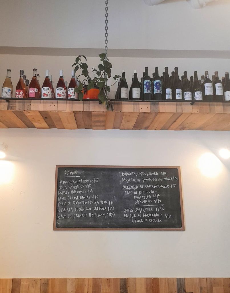 Al llegar te recibirá un espacio de esencia europea y encanto eventual, con algunas mesitas de madera establecidas sobre la banqueta y otras más al interior. La decoración es sencilla y reconfortante, hay plantitas que llenan de vida al lugar, acabados vintage, botellas de vino sobre sus estantes y un gran pizarrón donde leer el menú disponible durante el día.