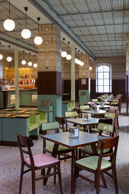 Wes Anderson es uno de los directores de cine más reconocidos a nivel internacional, esto gracias a su maravilloso estilo simétrico y de composición pictórica, con el uso preciso de tonalidades pastel y características extravagantes. Muchos de sus planos parecen sacados de una postal, escenarios ahora transferidos hasta la vida real en una preciosa cafetería establecida dentro de la Fundación Prada en Milán –un conjunto de edificios museísticos con galerías de exposiciones temporales–.