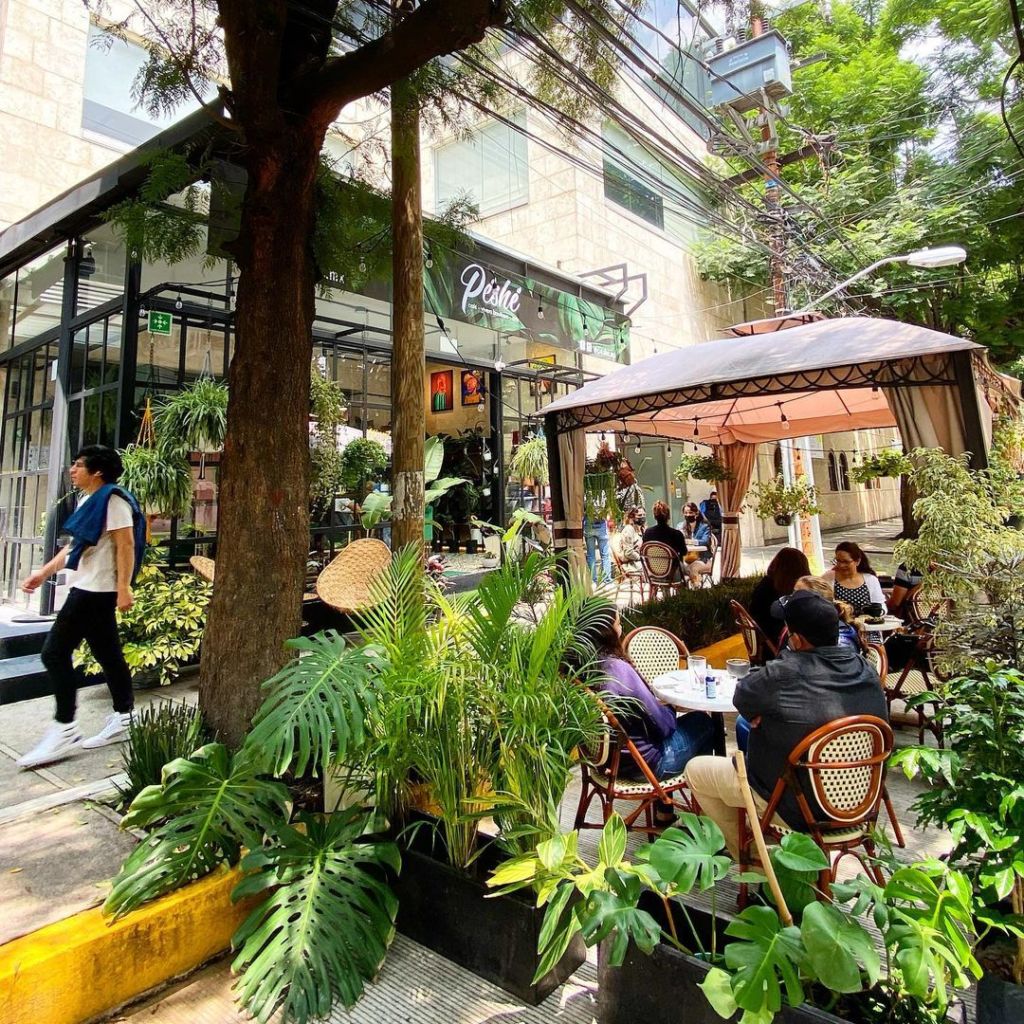 Localizado en un rinconcito de la Condesa, Peshé es uno de los mejores sitios donde disfrutar delicioso café de especialidad y un agradable entorno natural rodeado de plantas. Su espacio nació con el propósito de reconocer la importancia del medio ambiente para la vida humana, estableciéndose como un vivero funcional donde adquirir plantas, café mexicano y un menú de alimentos apapachadores; además, ofrece una pequeña galería de arte emergente, por lo que será el sitio perfecto para adquirir obras locales.
