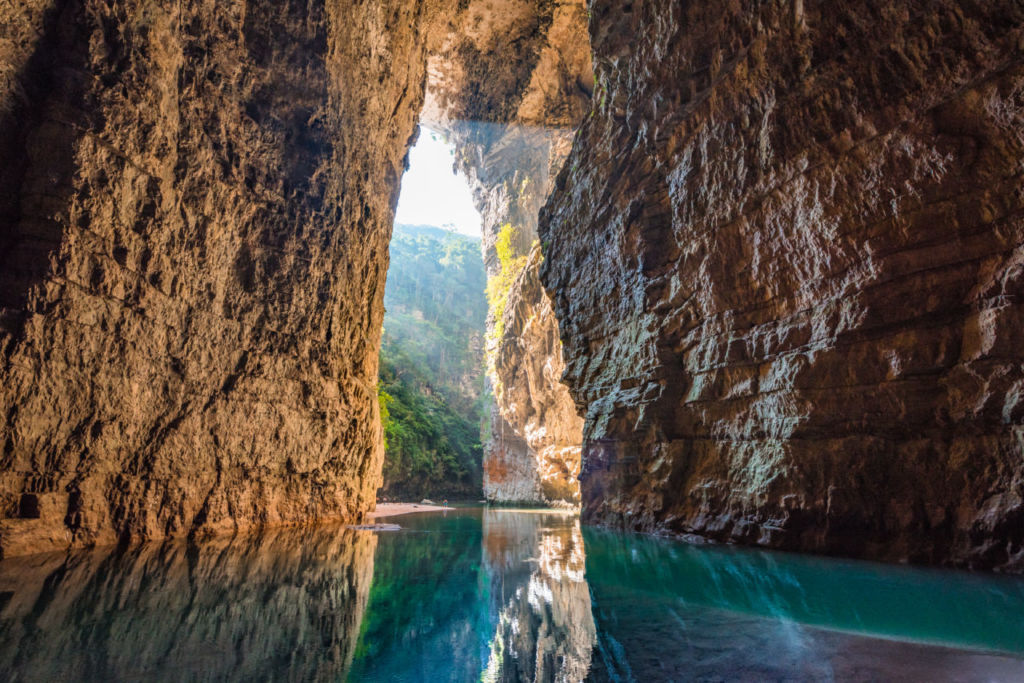 El cañón cuenta con una longitud de poco más de 80 kilómetros, con aguas provenientes del Río Grijalva y de preciosas tonalidades turquesas. Estos colores se complementan del verde presente en la selva tropical de Chiapas, lo que resulta en paisajes de ensueño que parecen sacados de un cuento de hadas, perfectos para fotografiar y maravillarse con la riqueza biodiversa del estado.