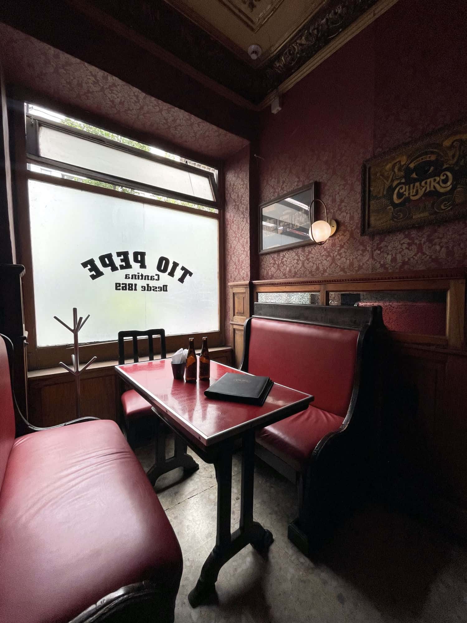 La Cantina Tío Pepe no siempre se llamó así. Originalmente era La Oriental y luego pasó a ser Habana, pero desde 1912 lleva el nombre actual. Al ser tan antigua, se dice que por sus puertas han pasado distintos personajes de la política y las artes, como el presidente Porfirio Díaz, a quien le gustaba frecuentar el centro de la capital. Otro cliente frecuente fue el escritor estadounidense William Burroughs, que llegó a México en 1949 huyendo de un juicio por narcotráfico, e incluso relató en su libro Junkie algunas de sus anécdotas en la cantina. Pero lo que realmente hace especial a este lugar es que sigue conservando su decoración original. Desde el pozo bajo la barra, donde antes se escupía tabaco, hasta las cabinas con sillones rojos que aún tienen timbres para llamar al mesero.